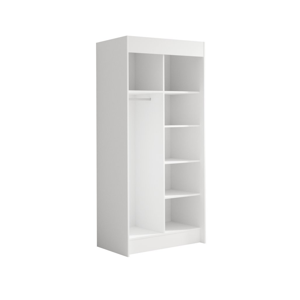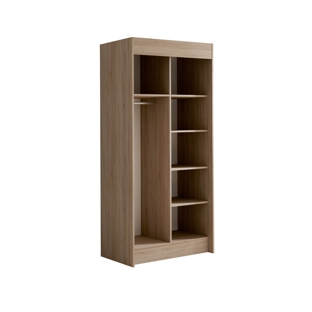 Drsna omara KARIEN 100 je praktična in elegantna rešitev za shranjevanje vaših oblačil in dodatkov. Zaradi drsnih vrat je idealna izbira za manjše prostore, kot so ozki hodniki ali spalnice, kjer vsak centimeter šteje.