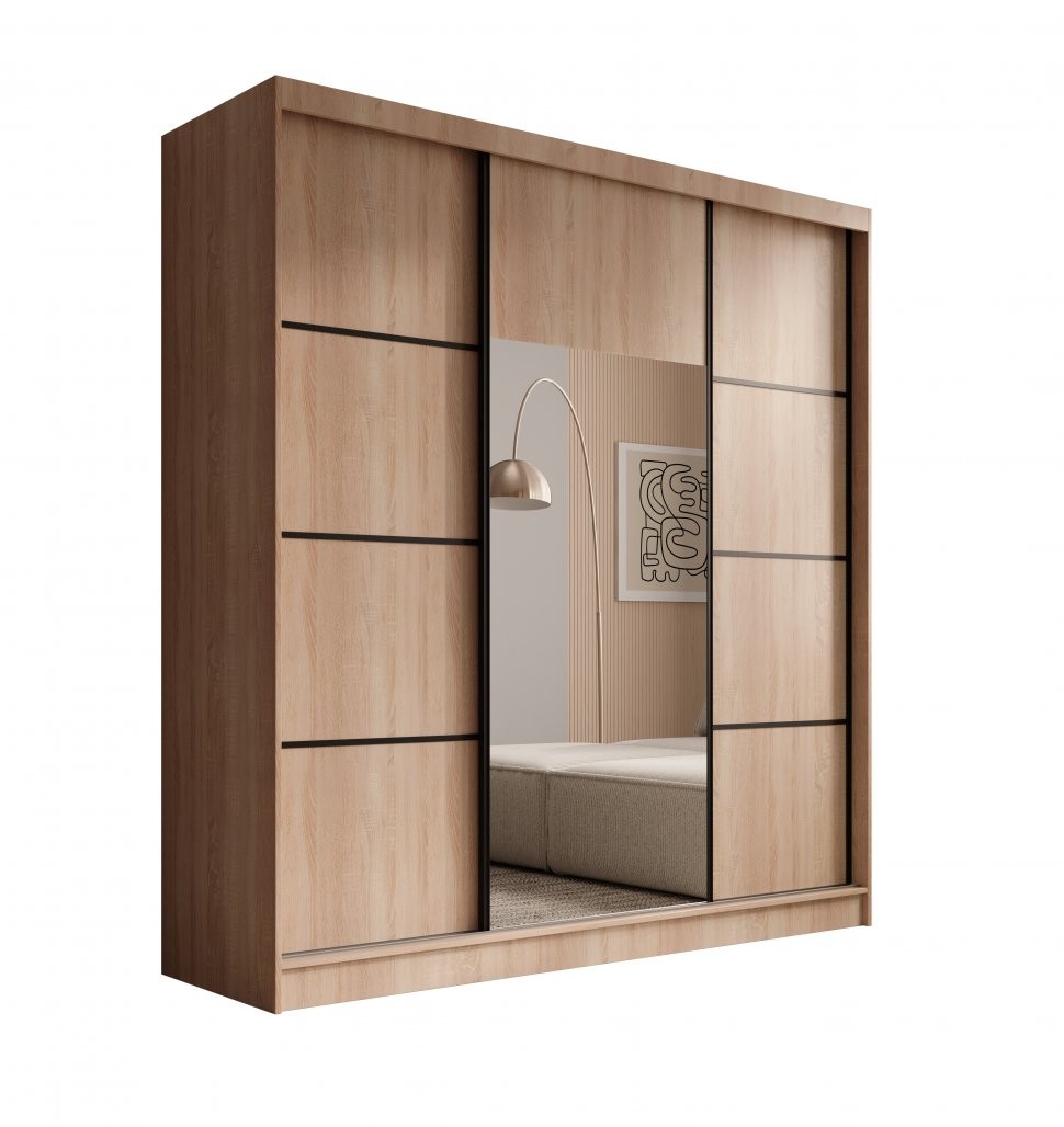 Drsna omara Keri s tremi vrati in ogledalom, 200 cm - SONOMA HRAST