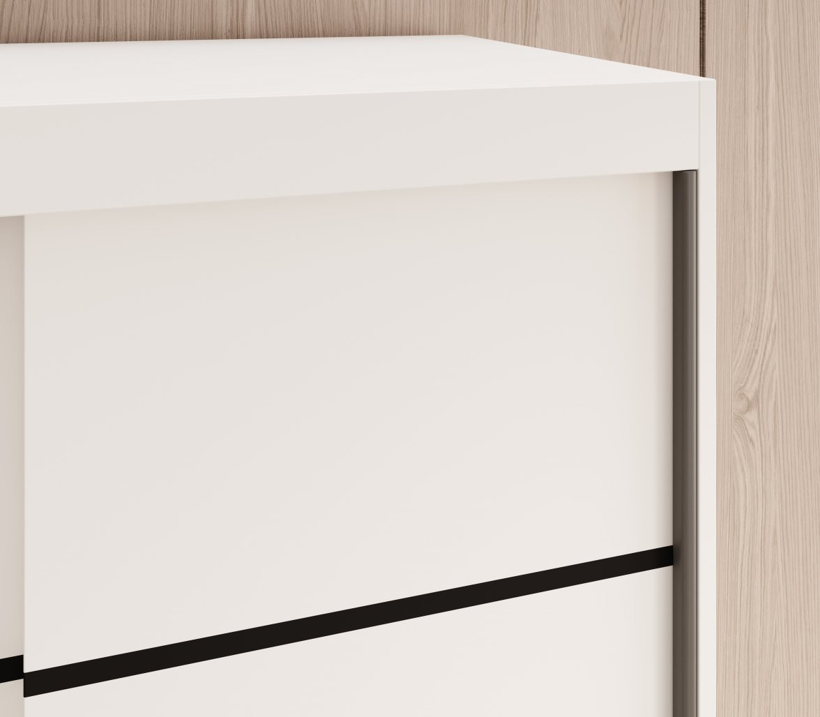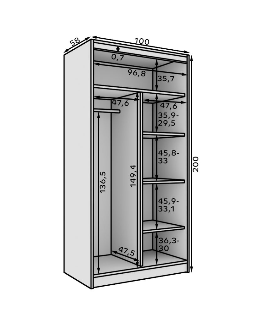 Drsna omara Laurencja 100 z ogledalom (bela) je elegantna in funkcionalna rešitev za organizacijo vašega prostora. S svojo minimalistično zasnovo in nevtralnimi barvnimi kombinacijami se brez težav prilagodi vsakemu slogu notranje opreme – od klasičnega do sodobnega.