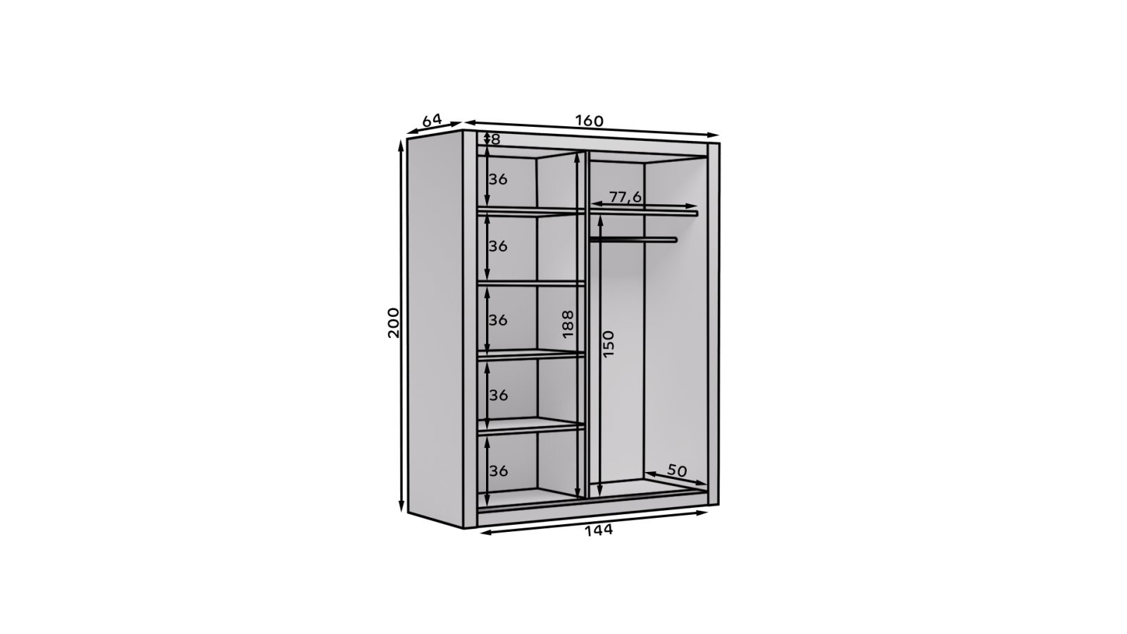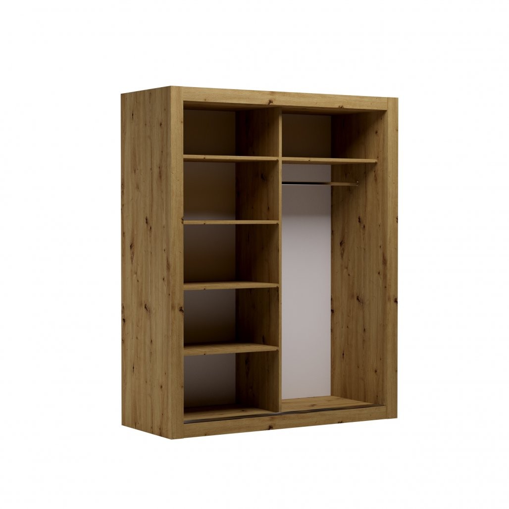 Drsna omara MOX 160 je popolna rešitev za organizacijo vašega prostora, še posebej v manjših sobah ali ozkih hodnikih. Zaradi drsnega sistema vrat ne potrebuje dodatnega prostora za odpiranje, hkrati pa ponuja veliko prostora za shranjevanje.