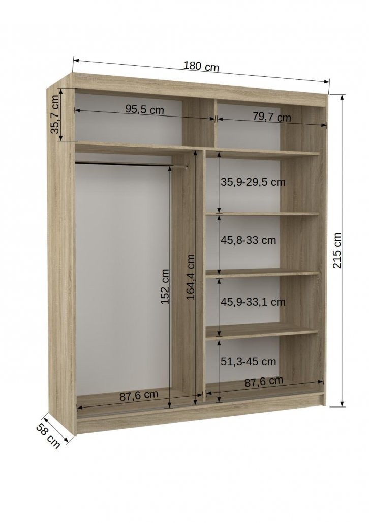 Omara je primerna za manjše prostore ali ozke hodnike, saj drsna vrata ne zahtevajo dodatnega prostora za odpiranje. Vgrajena LED osvetlitev dodatno poudari njen moderen videz in ustvari prijetno vzdušje v prostoru.