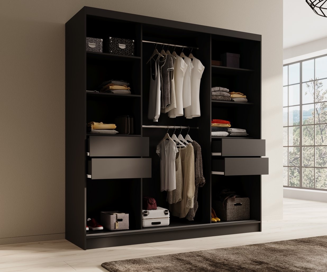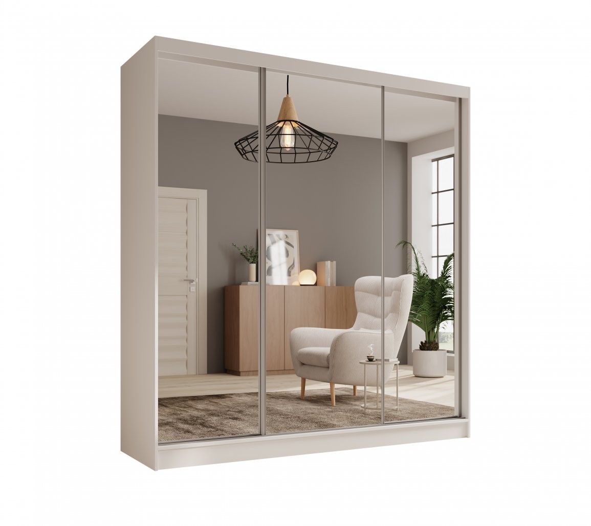 Drsna omara Tola 200 z ogledalom je popolna izbira za vse, ki želijo združiti sodoben dizajn s funkcionalnostjo. S svojo širino 200 cm in višino 215 cm nudi veliko prostora za shranjevanje oblačil, posteljnine in drugih predmetov.