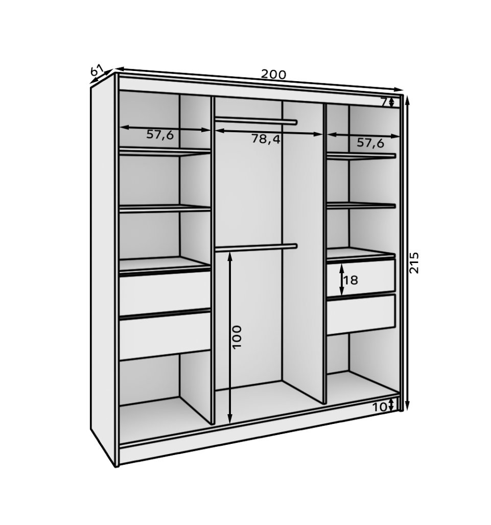 - Dimenzije: Širina: 200 cm, Višina: 215 cm, Globina: 61 cm