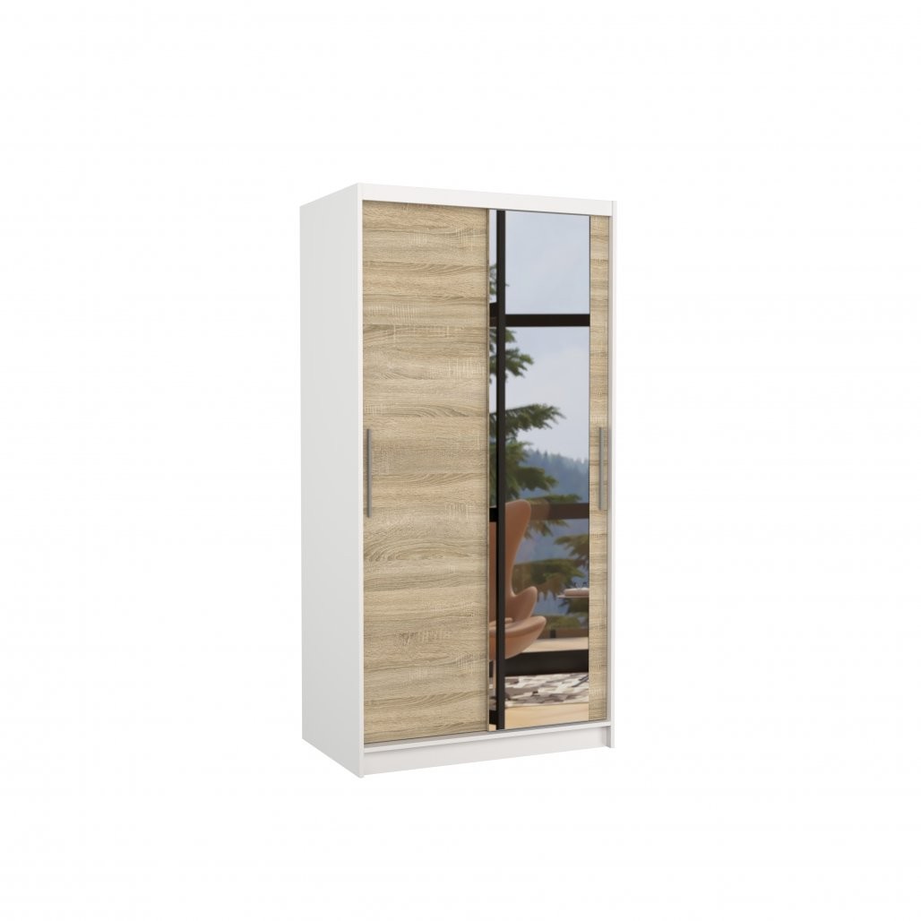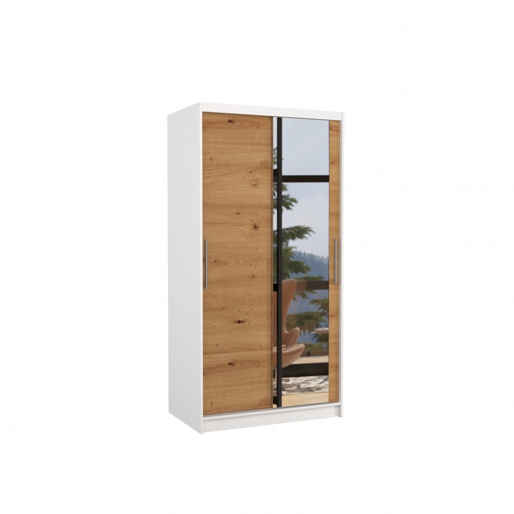 Drsna omara z ogledalom BAROS 100 cm je popolna izbira za vsak dom, kjer je pomembna optimalna izraba prostora. S svojo funkcionalno zasnovo in modernim videzom bo elegantno dopolnila vašo spalnico, hodnik ali garderobo.