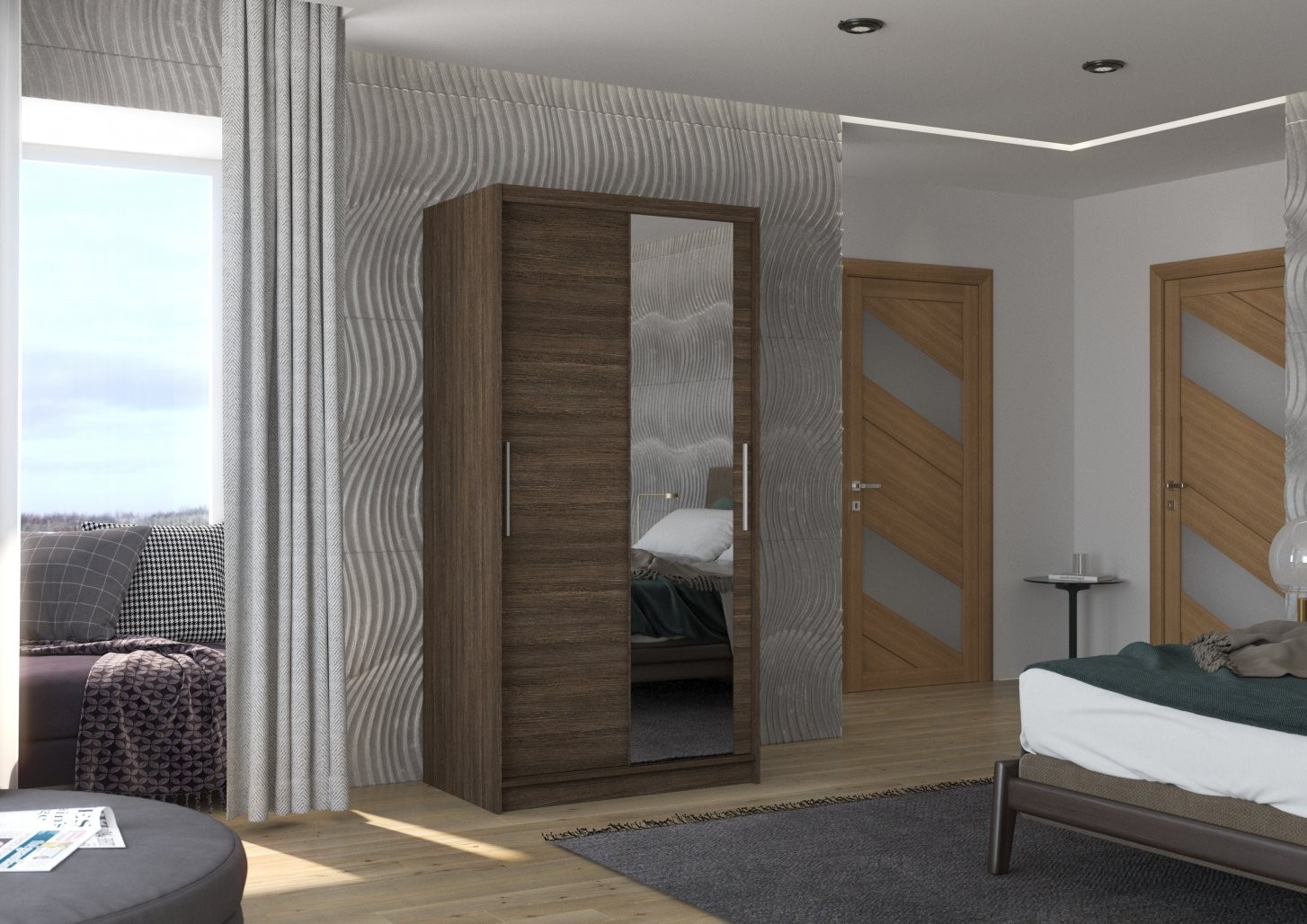 Drsna omara z ogledalom BAROS 100 cm (čokolada) je popolna izbira za vsak dom, kjer je pomembna optimalna izraba prostora. S svojo funkcionalno zasnovo in modernim videzom bo elegantno dopolnila vašo spalnico, hodnik ali garderobo.