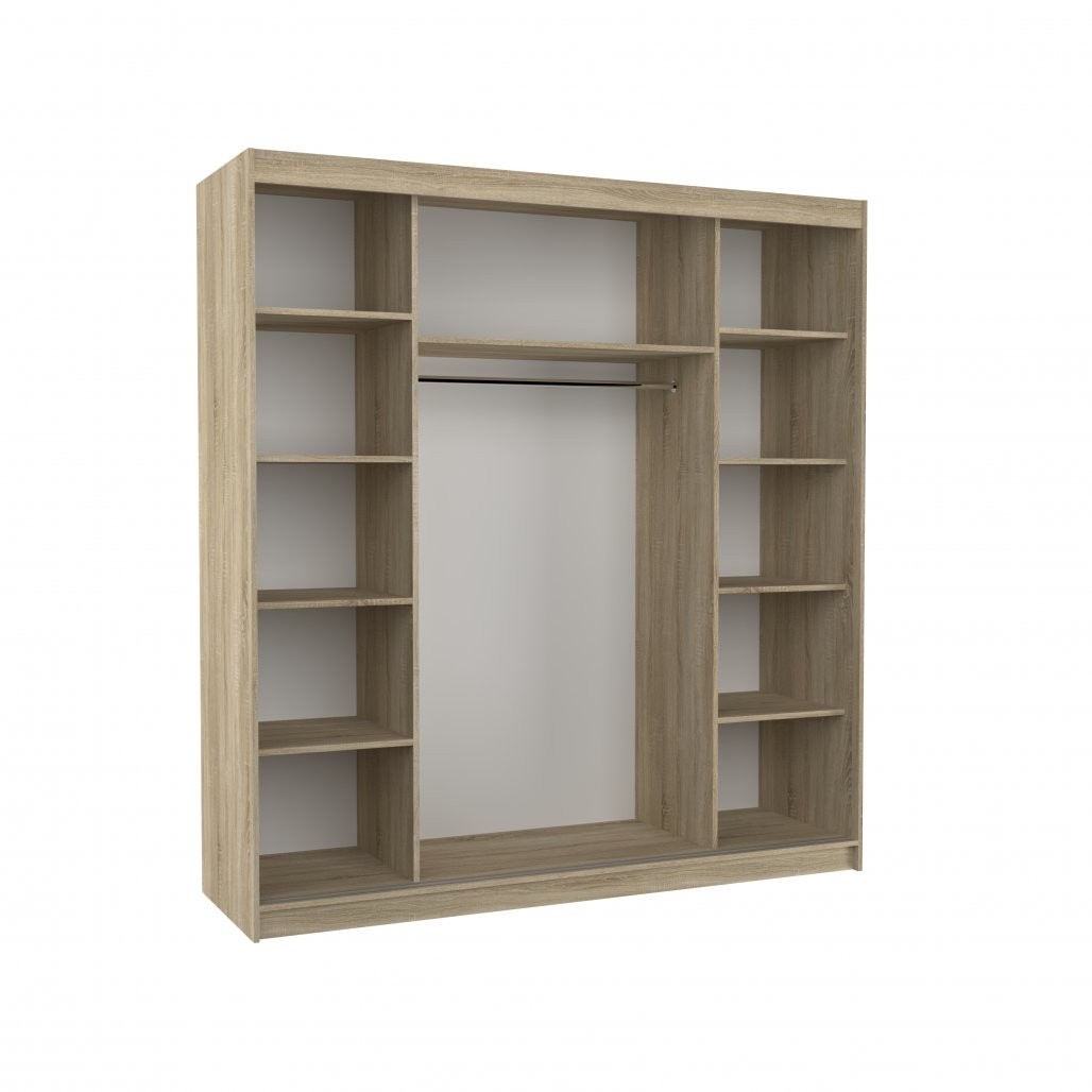 Drsna omara z ogledalom DELLA 200 cm je elegantna in funkcionalna rešitev za shranjevanje oblačil in dodatkov. S svojo premišljeno zasnovo in vgrajenim ogledalom optično poveča prostor, kar jo naredi idealno za manjše sobe ali ozke hodnike.