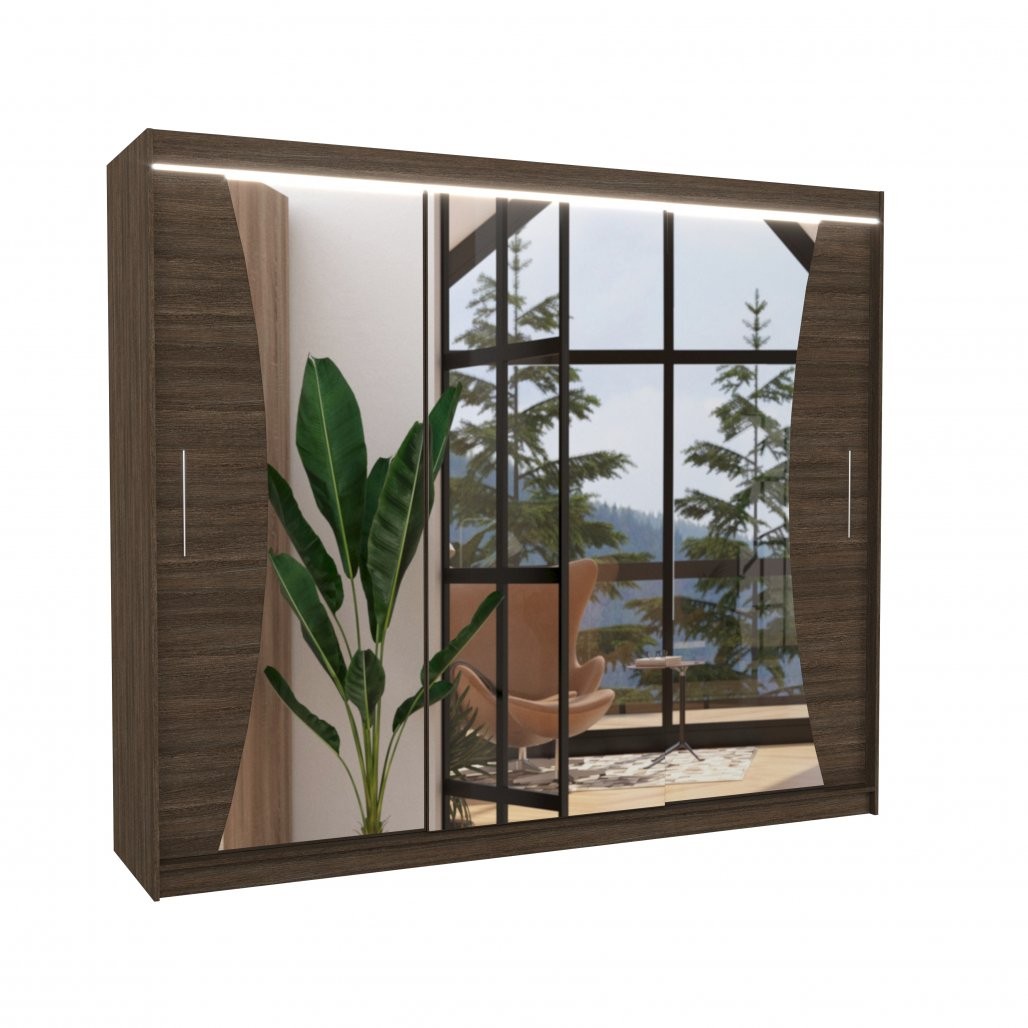 Drsna omara z ogledalom DIEGO 250 cm - ČOKOLADA