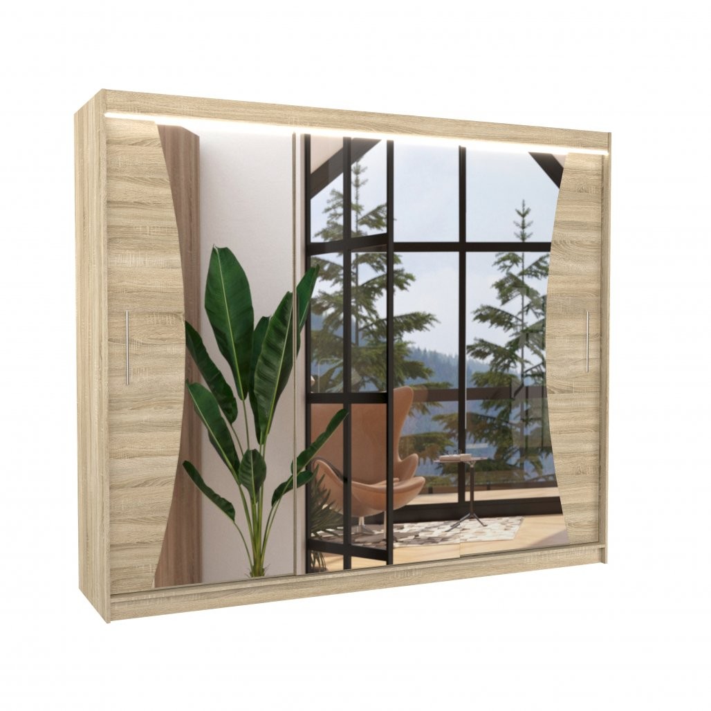 Drsna omara z ogledalom DIEGO 250 cm - SONOMA-SONOMA HRAST