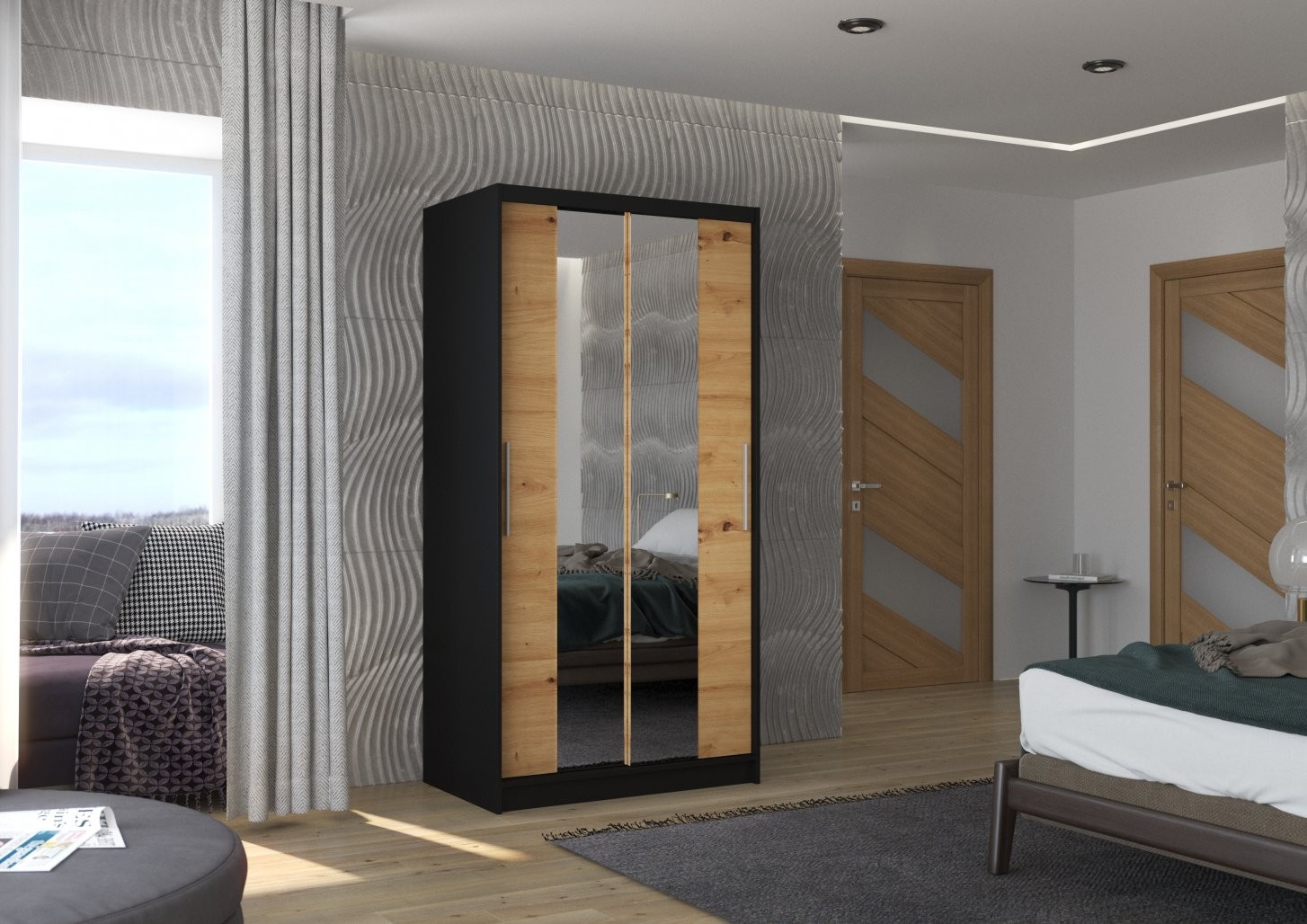 Drsna omara z ogledalom DRAGONIS 100 cm je popolna rešitev za organizacijo vašega doma. Njena elegantna zasnova in praktična funkcionalnost jo naredita idealno za spalnice, hodnike ali manjše prostore, kjer je vsak centimeter pomemben.