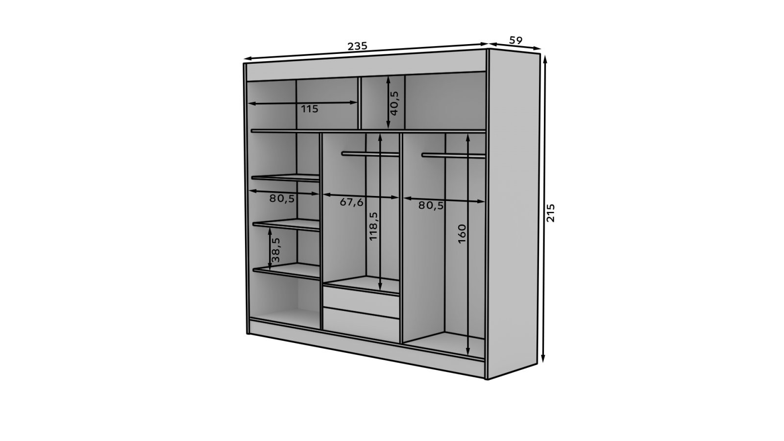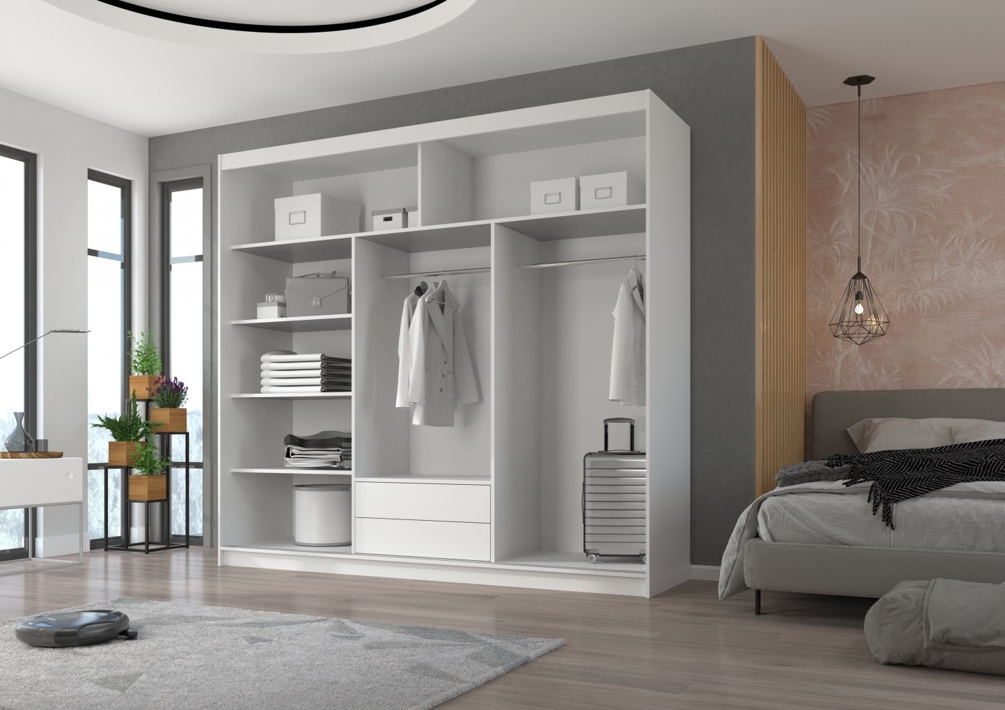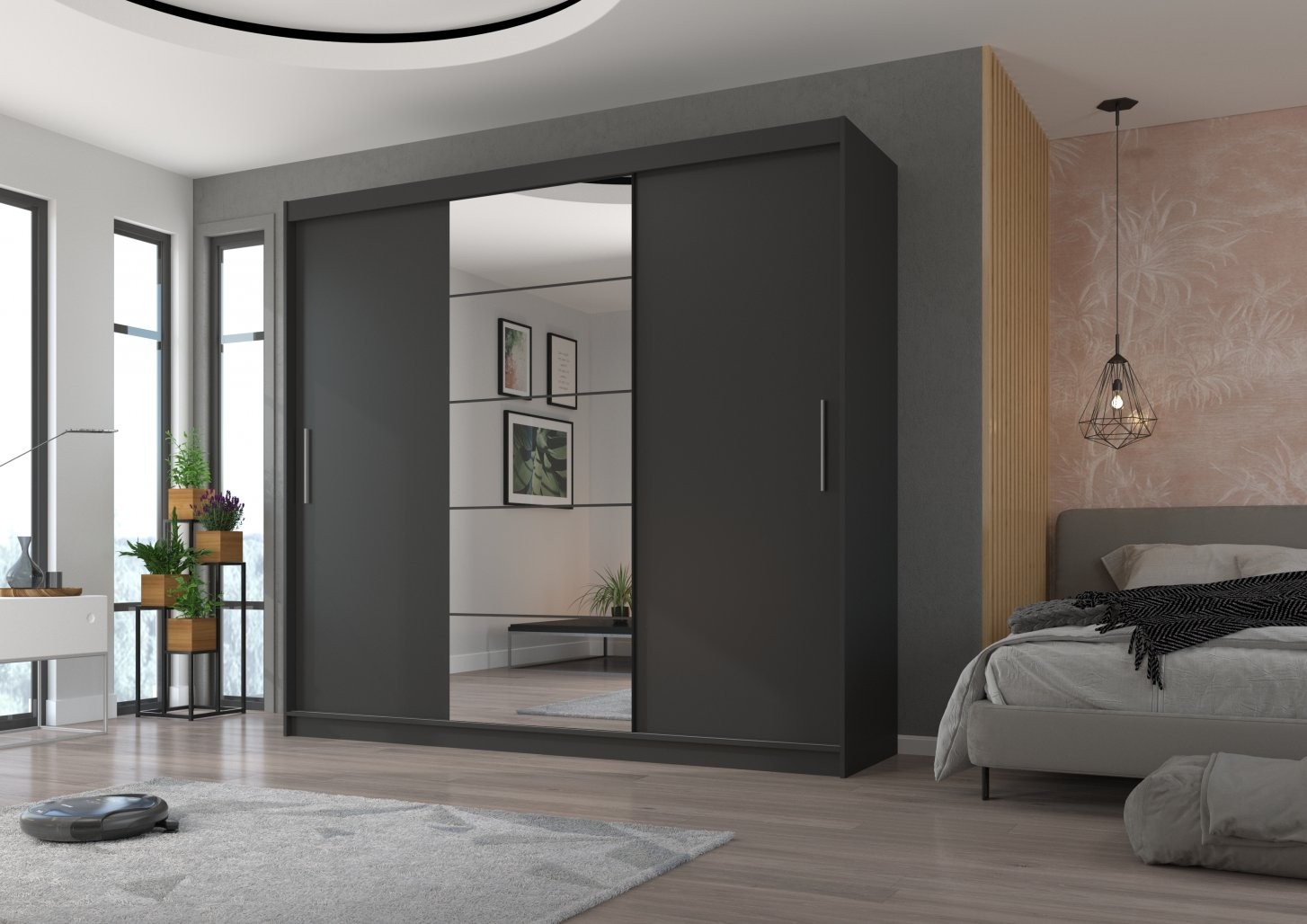 Drsna omara z ogledalom ERWIN 235 cm je popolna izbira za vsak dom, ki potrebuje prostorsko učinkovito in elegantno rešitev za shranjevanje oblačil. Z modernim dizajnom in praktično funkcionalnostjo je idealna za spalnice, hodnike ali manjše prostore.