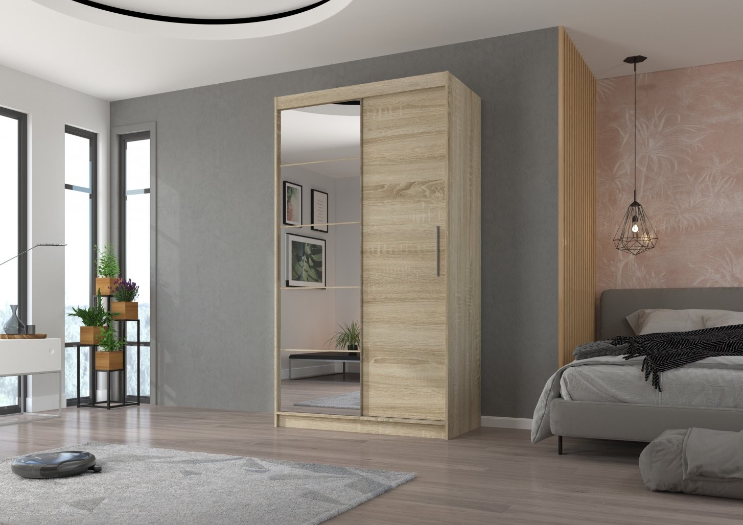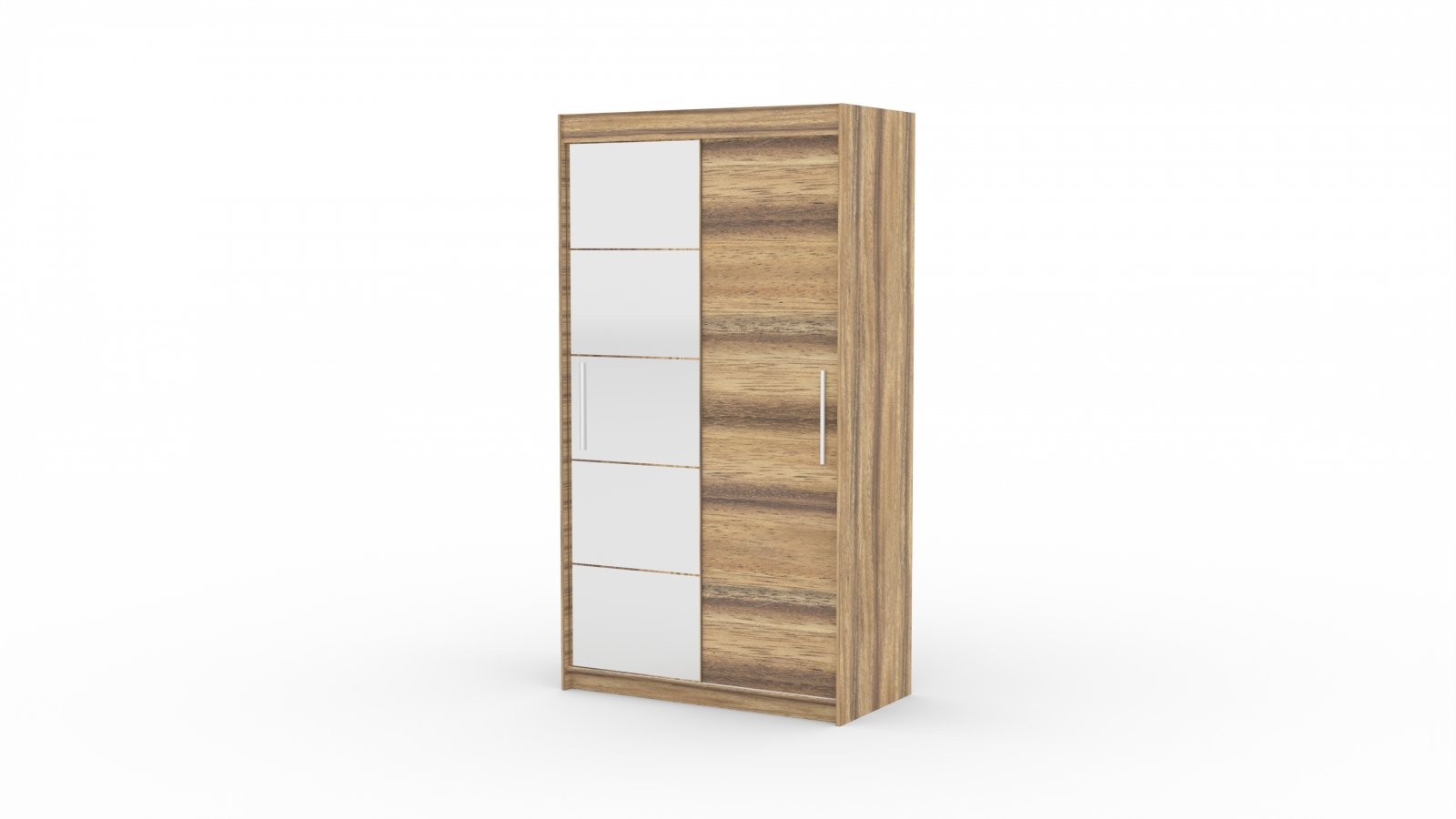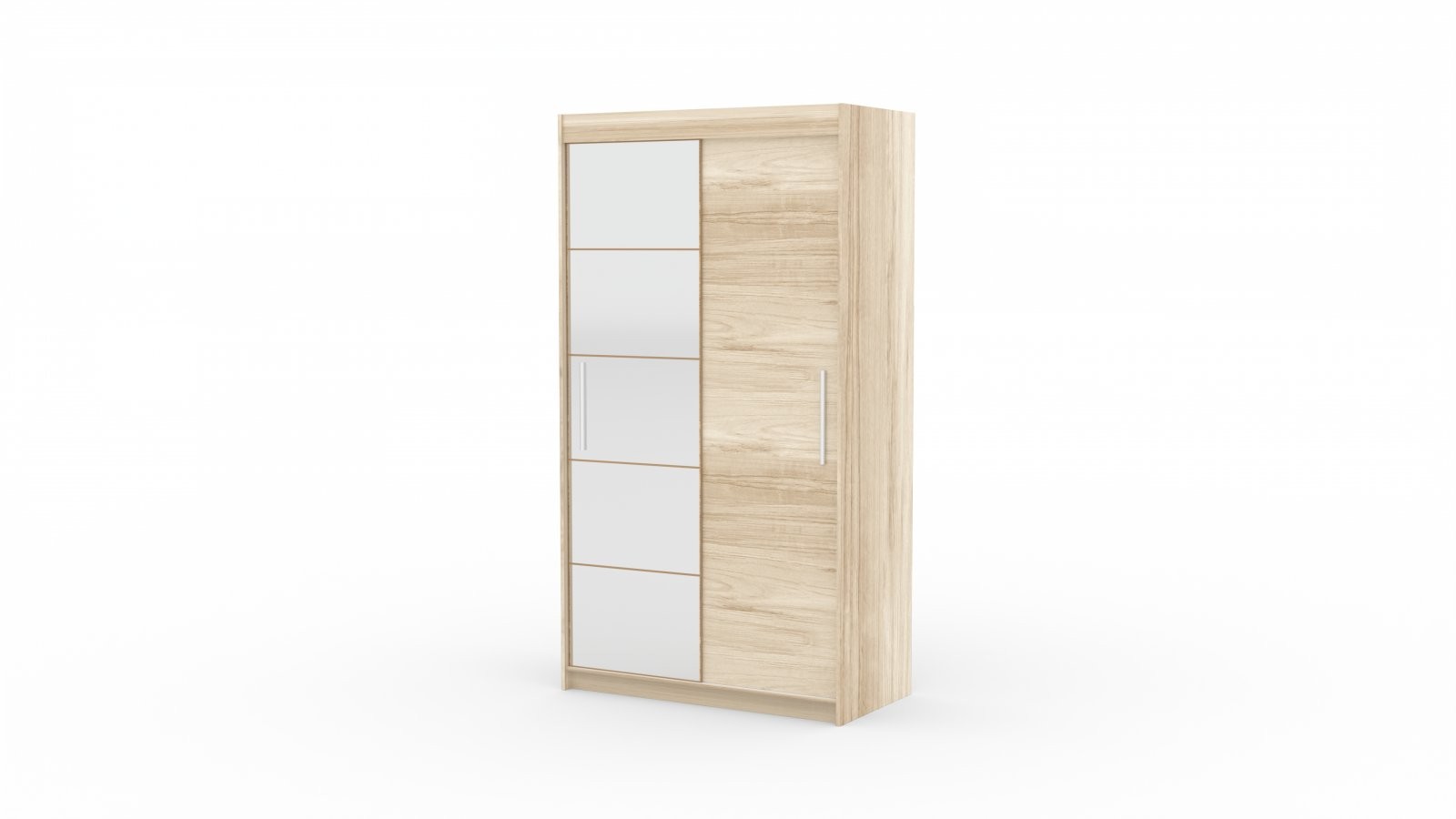 Drsna omara z ogledalom ESTI, 180 cm je popolna izbira za vsak dom, ki potrebuje praktično in elegantno rešitev za shranjevanje. Zaradi drsnih vrat je idealna za manjše prostore, saj ne zahteva dodatnega prostora za odpiranje.