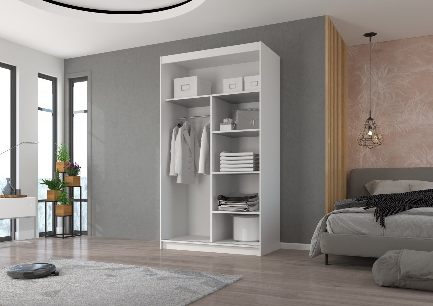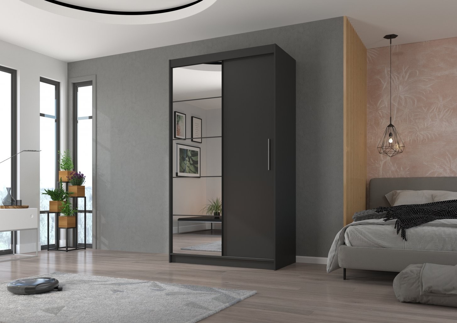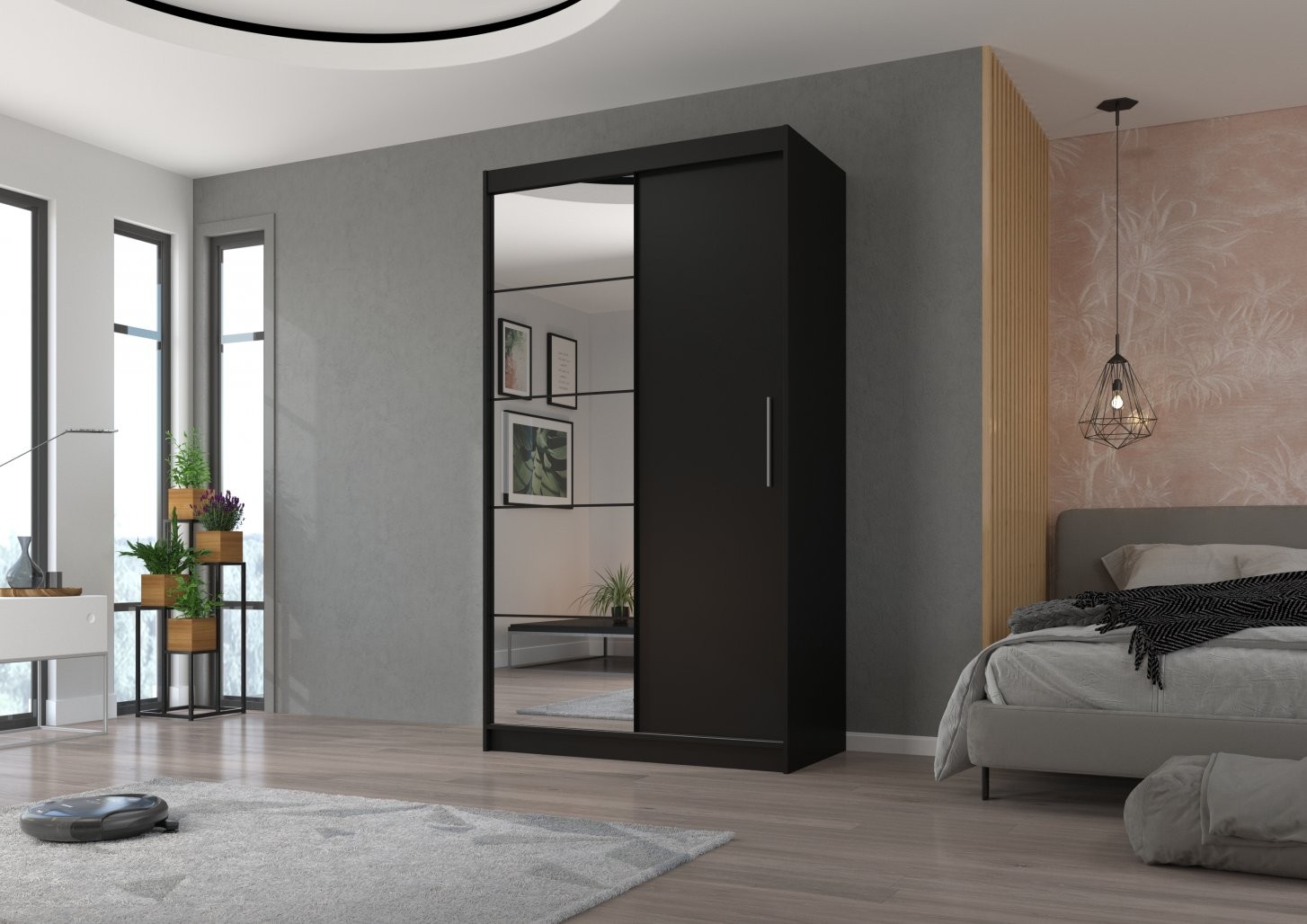 Drsna omara z ogledalom ESTI, 180 cm je popolna izbira za vsak dom, ki potrebuje praktično in elegantno rešitev za shranjevanje. Zaradi drsnih vrat je idealna za manjše prostore, saj ne zahteva dodatnega prostora za odpiranje.