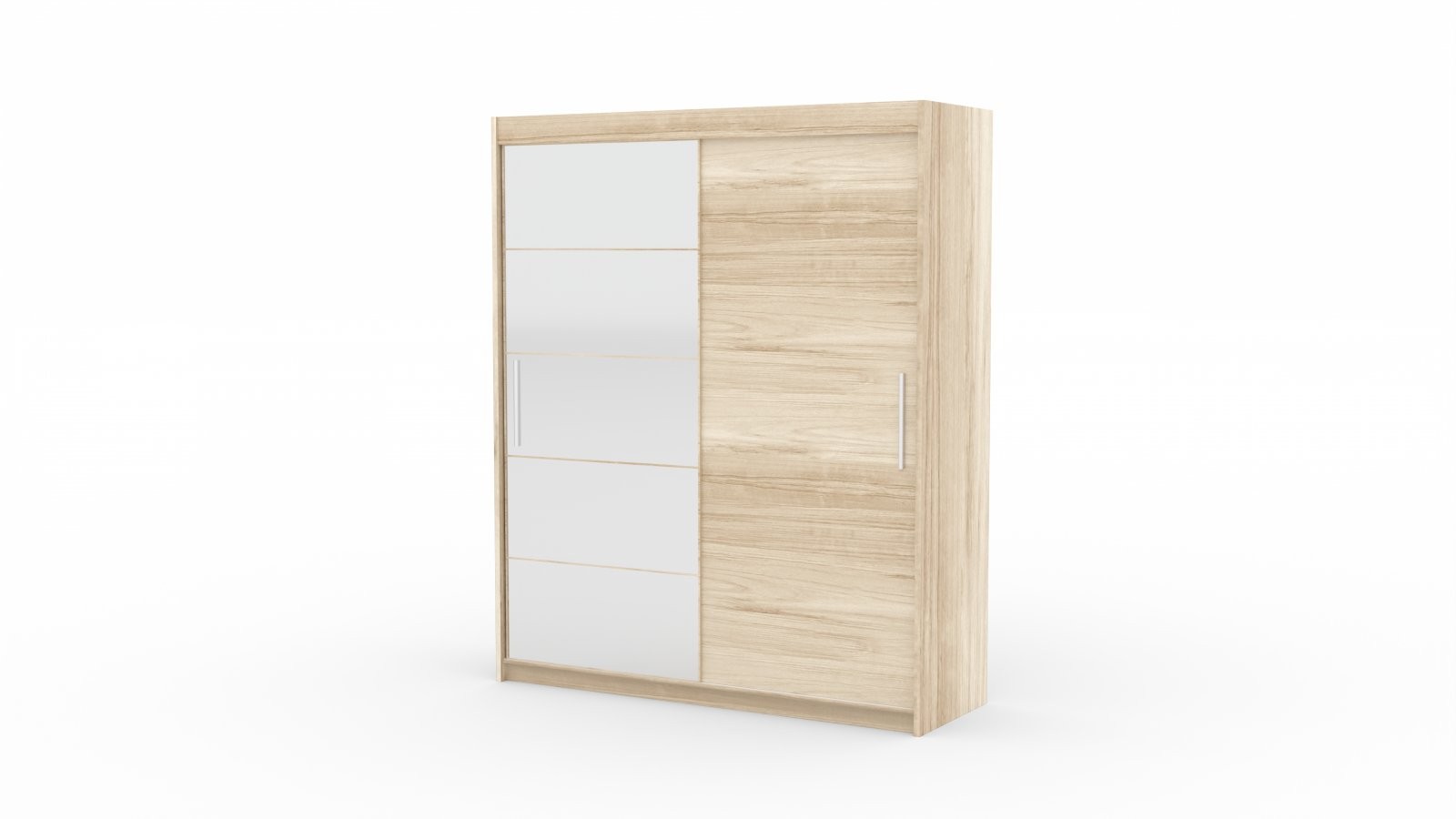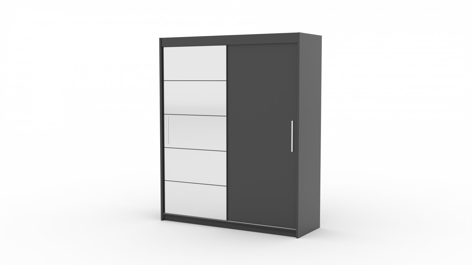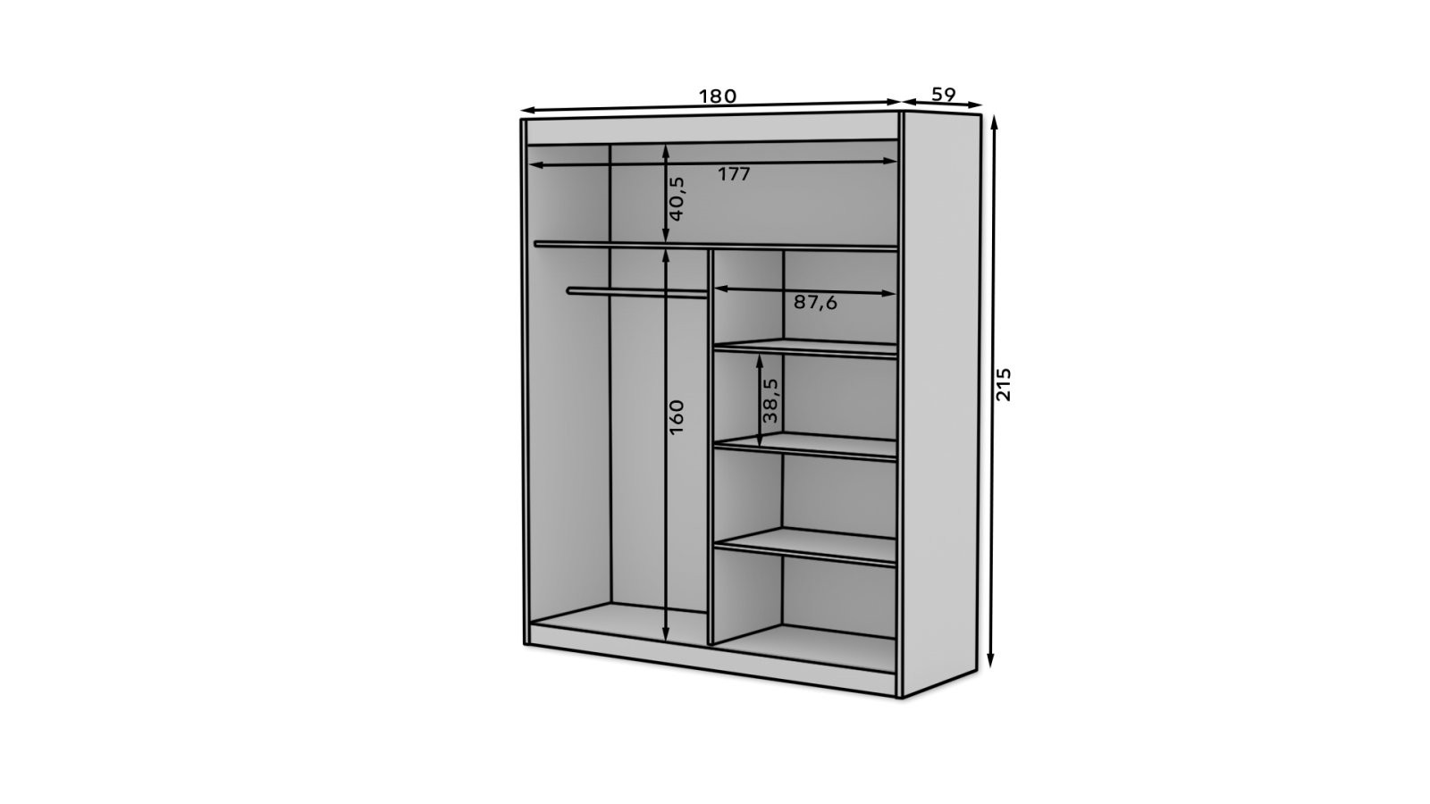 Drsna omara z ogledalom ESTI, 180 cm je popolna izbira za vsak dom, ki potrebuje praktično in elegantno rešitev za shranjevanje. Zaradi drsnih vrat je idealna za manjše prostore, saj ne zahteva dodatnega prostora za odpiranje.