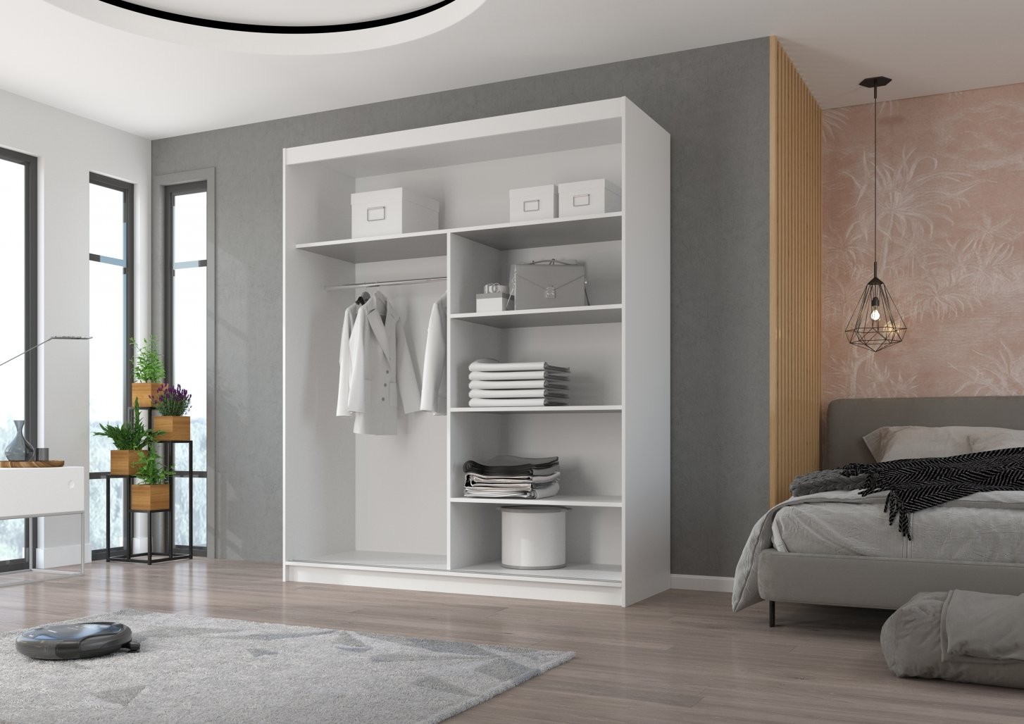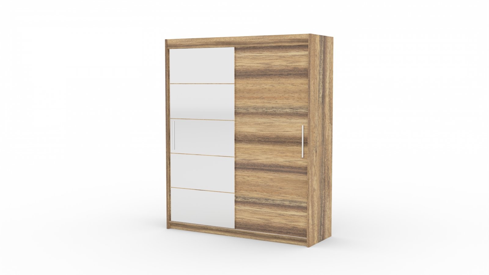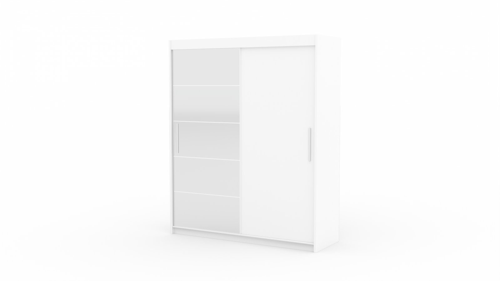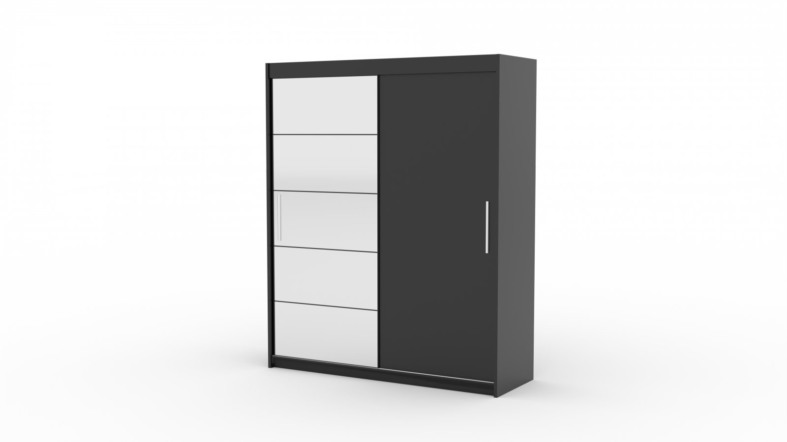 Drsna omara z ogledalom ESTI, 180 cm je popolna izbira za vsak dom, ki potrebuje praktično in elegantno rešitev za shranjevanje. Zaradi drsnih vrat je idealna za manjše prostore, saj ne zahteva dodatnega prostora za odpiranje.