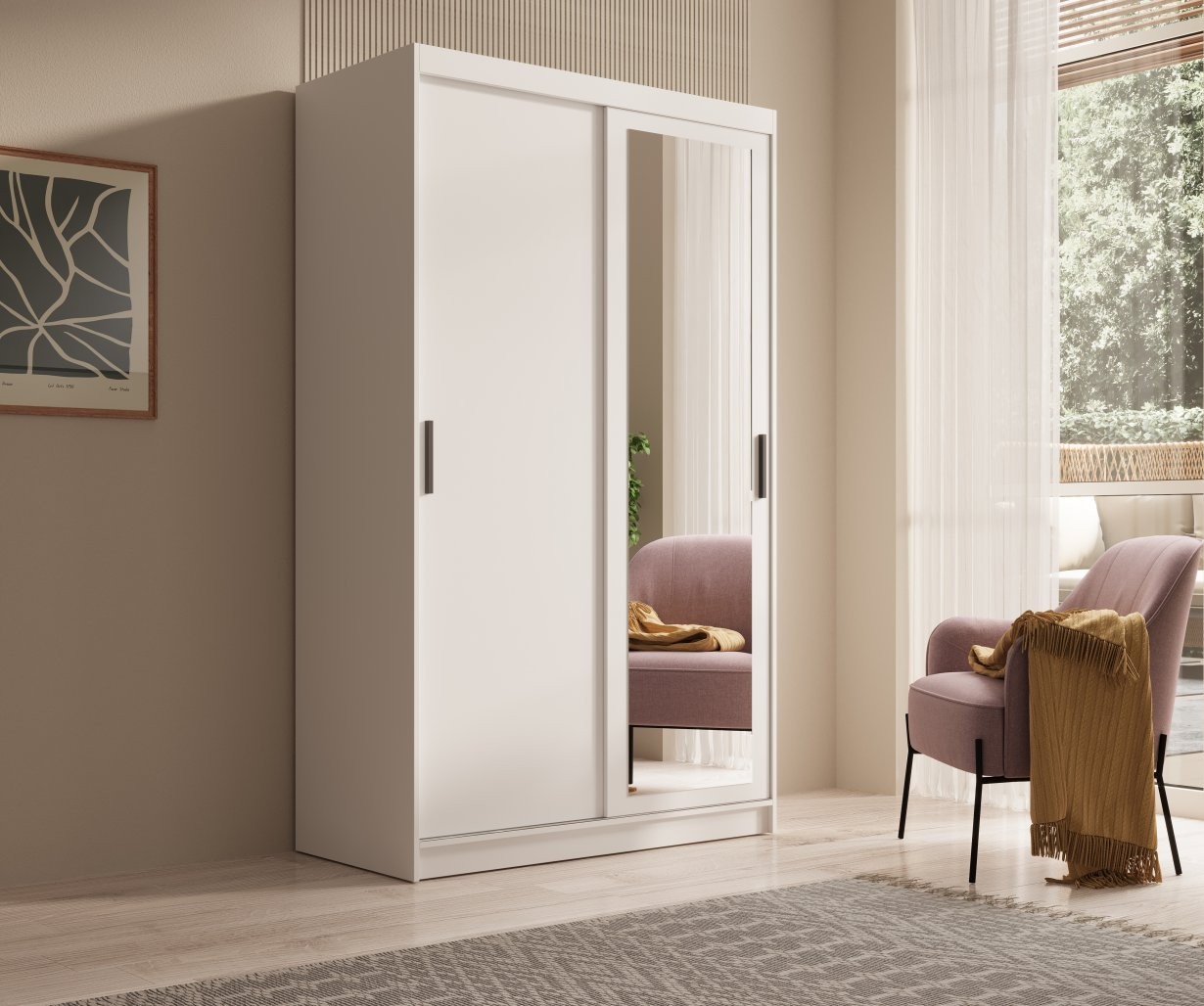 Drsna omara z ogledalom Hailey 180 cm združuje eleganco in funkcionalnost z ogledalnimi vrati, več barvami in dimenzijami – popolna rešitev za urejen in moderen dom.