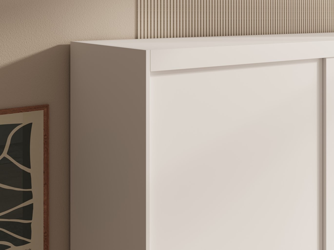 Drsna omara z ogledalom Hailey 180 cm združuje sodoben dizajn in praktičnost, kar jo naredi popolno izbiro za vsak dom. S čistimi linijami in minimalističnim videzom se brez težav zlije z različnimi notranjimi slogi, medtem ko ogledalna vrata optično povečajo prostor in mu dodajo eleganco.
