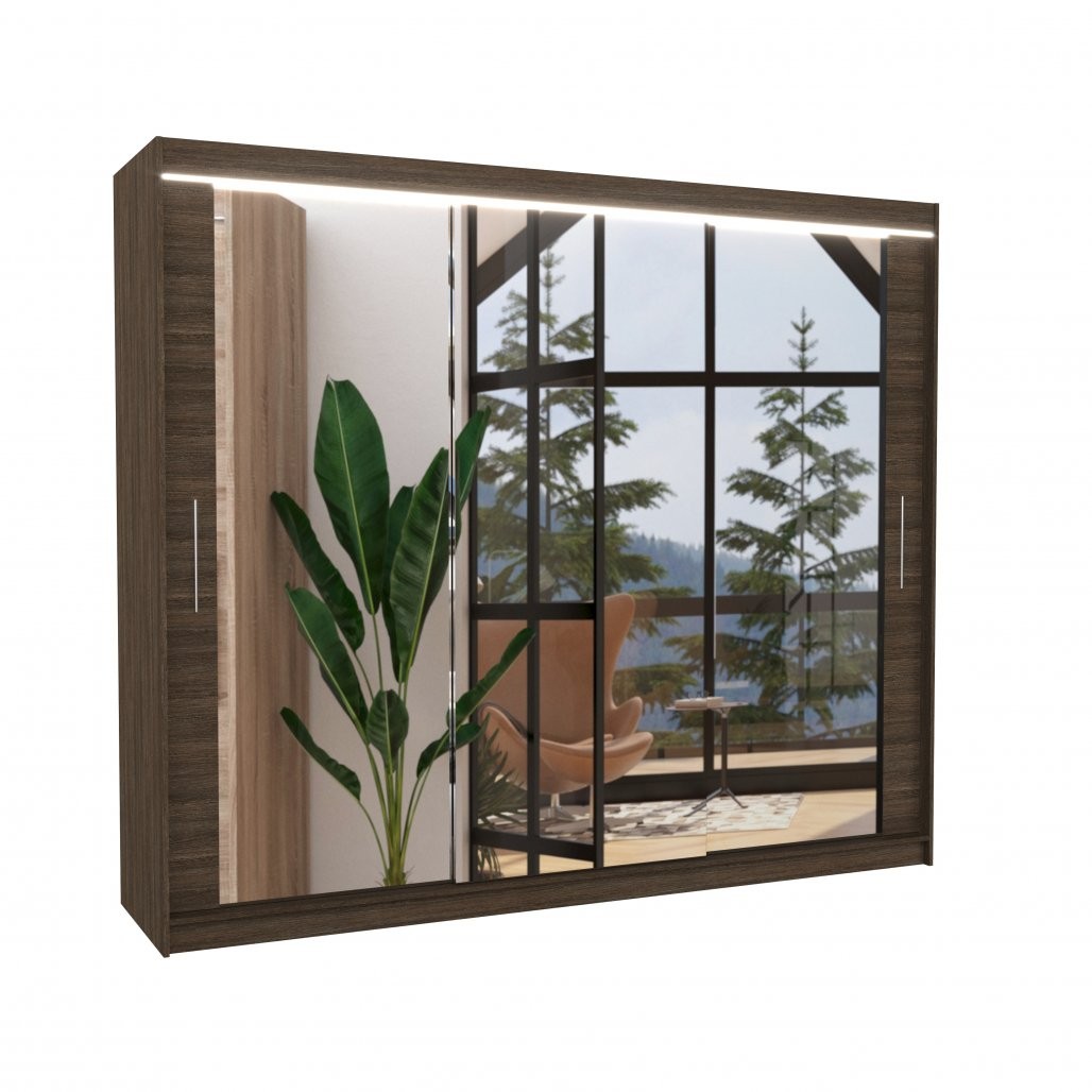 Drsna omara z ogledalom in LED lučjo CHESTER 250 je popolna izbira za sodobne spalnice, kjer je pomembna tako funkcionalnost kot estetika. Zaradi drsnih vrat je idealna za manjše prostore, saj ne potrebuje dodatnega prostora za odpiranje. Ogledalo na sprednji strani optično poveča prostor, LED osvetlitev pa doda pridih elegance.