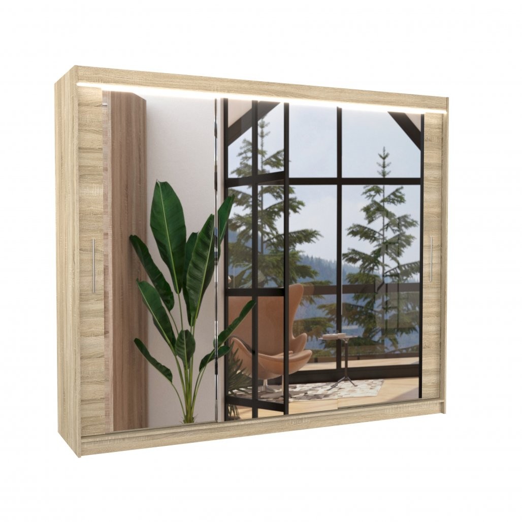 Drsna omara z ogledalom in LED lučjo CHESTER 250 je popolna izbira za sodobne spalnice, kjer je pomembna tako funkcionalnost kot estetika. Zaradi drsnih vrat je idealna za manjše prostore, saj ne potrebuje dodatnega prostora za odpiranje. Ogledalo na sprednji strani optično poveča prostor, LED osvetlitev pa doda pridih elegance.