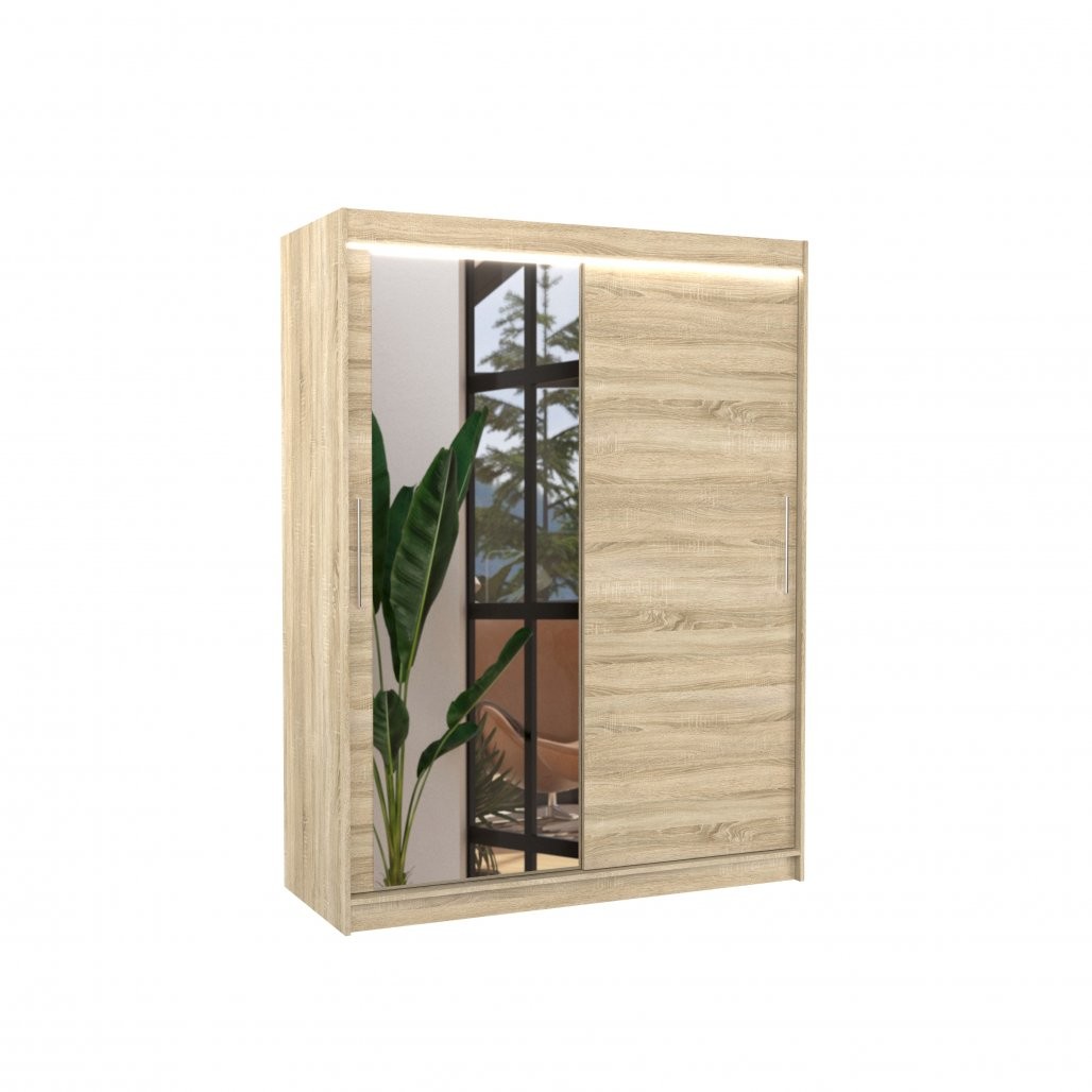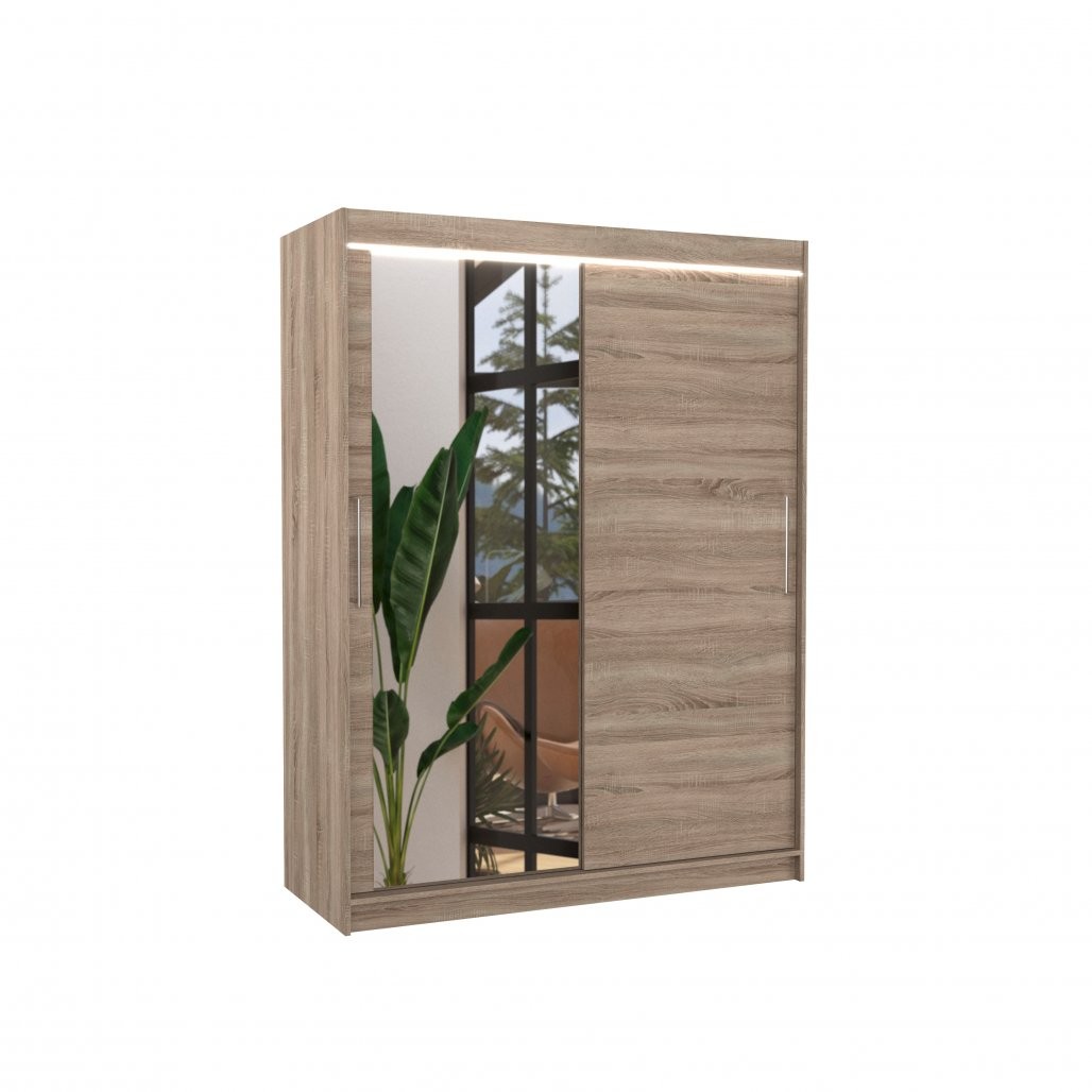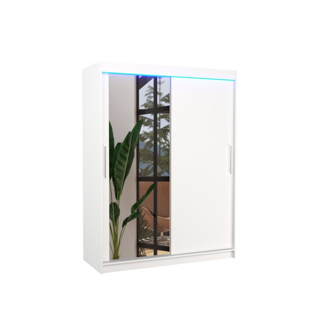 Drsna omara z ogledalom in LED osvetlitvijo BIANCO 150 je popolna izbira za vse, ki iščejo funkcionalno in estetsko dovršeno rešitev za shranjevanje oblačil v manjših prostorih.