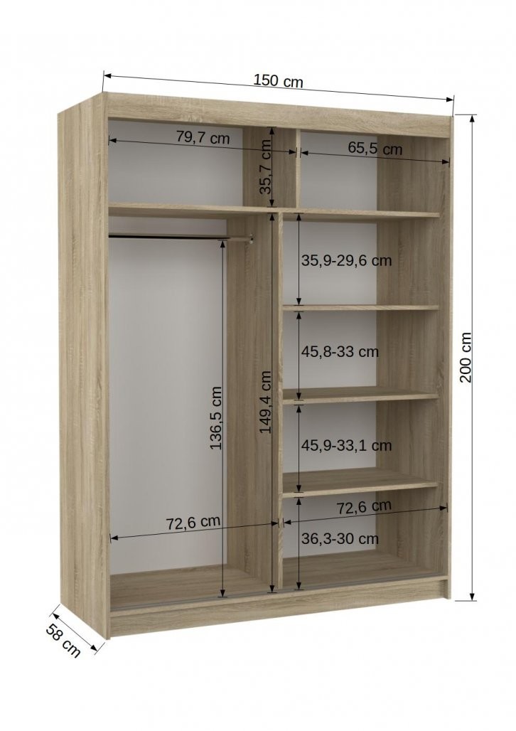 Omara BIANCO 150 je na voljo v več barvnih kombinacijah in predstavlja odlično izbiro za vsako spalnico, hodnik ali garderobno sobo.