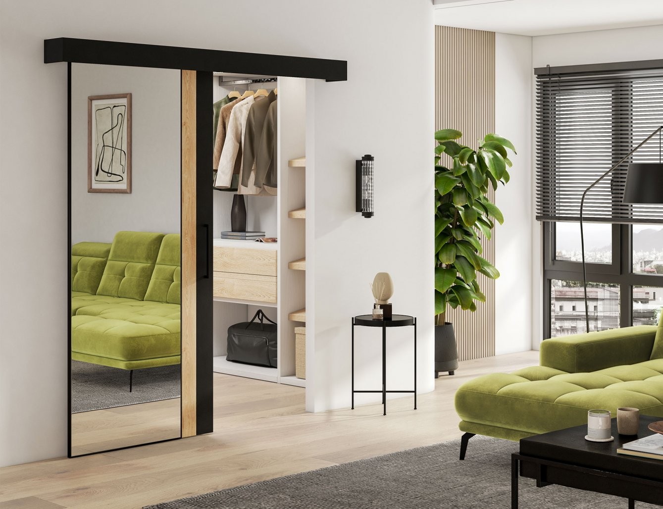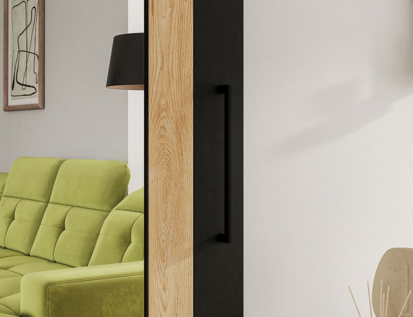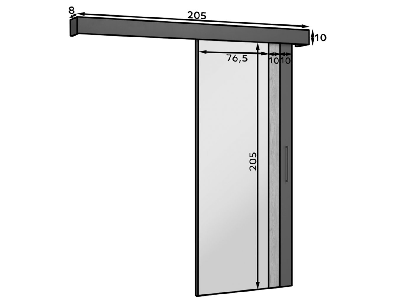 Komplet vključuje tudi pokrov in eleganten črn ročaj, ki dodata pridih elegance. Vrata imajo vgrajeno tudi zamašico, voziček in spodnje vodilo za povečano varnost in stabilnost. Montaža je enostavna z namestitvijo na steno. Drsna vrata Tilman so odlična izbira za ustvarjanje stilsko dovršenega in funkcionalnega bivalnega okolja.