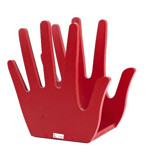 Držalo je iz lesa (MDF plošče), prebarvana v naravne barve.