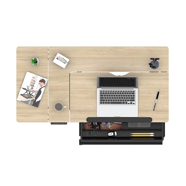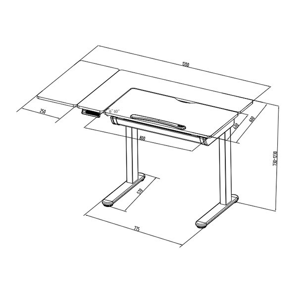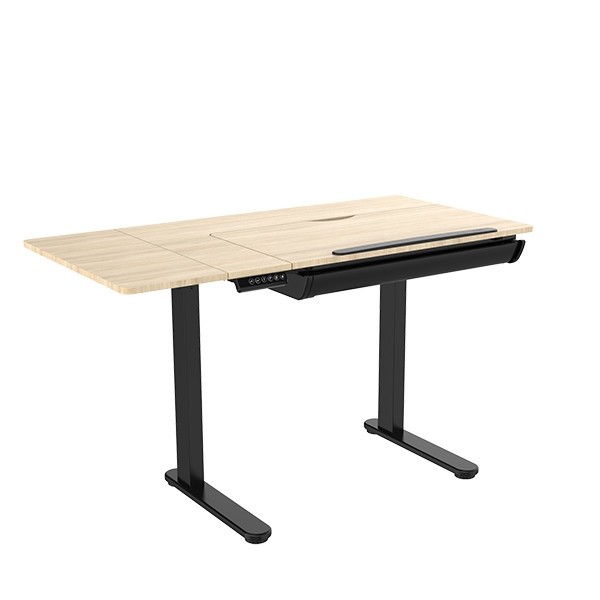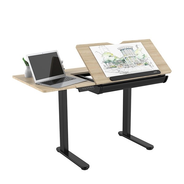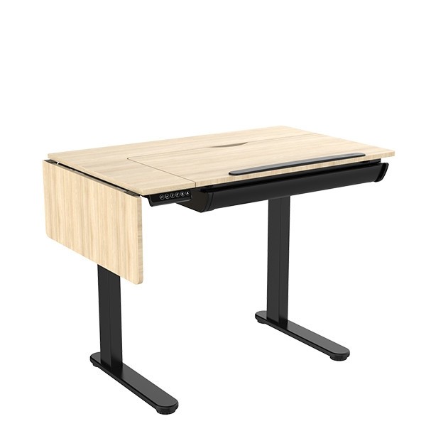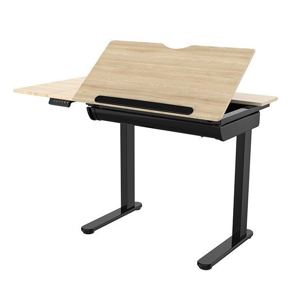 Nadzorna plošča mize vam omogoča nastavitev višine mize in diagonalne nastavitve namizja med 0° in 40°. Močen motor ki deluje pri napetosti med 100 do 240V omogoča da neobremenjeno mizo dvigujete celo 25mm na sekundo. Kot posebna ugodnost, miza je opremljena tudi s ptedalom za shranjevanje tako da nikoli več ne boste imeli neorganizirano pisalno mizo, tudi ko ste najbolj zaposleni