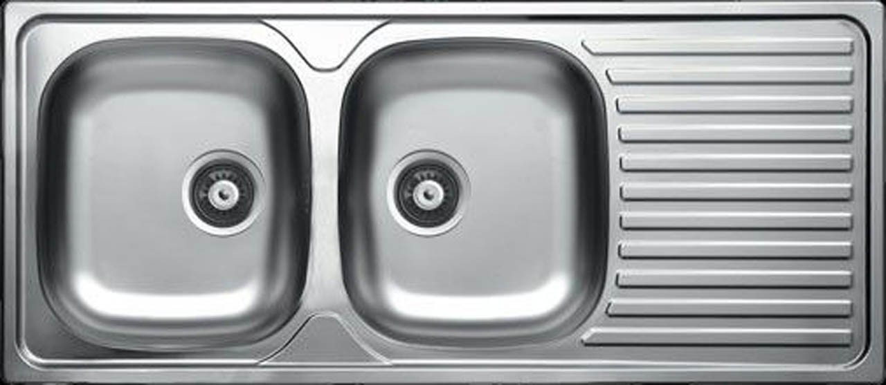 Dvojno korito A LINE 1160x500 je modernega izgleda in je narejeno iz nerjavnega jekla. Korito vsebuje dve globoki posodi in odcejalno površino, kar daje veliko prostora za pomivanje in odlaganje posode ter ostalih stvari.