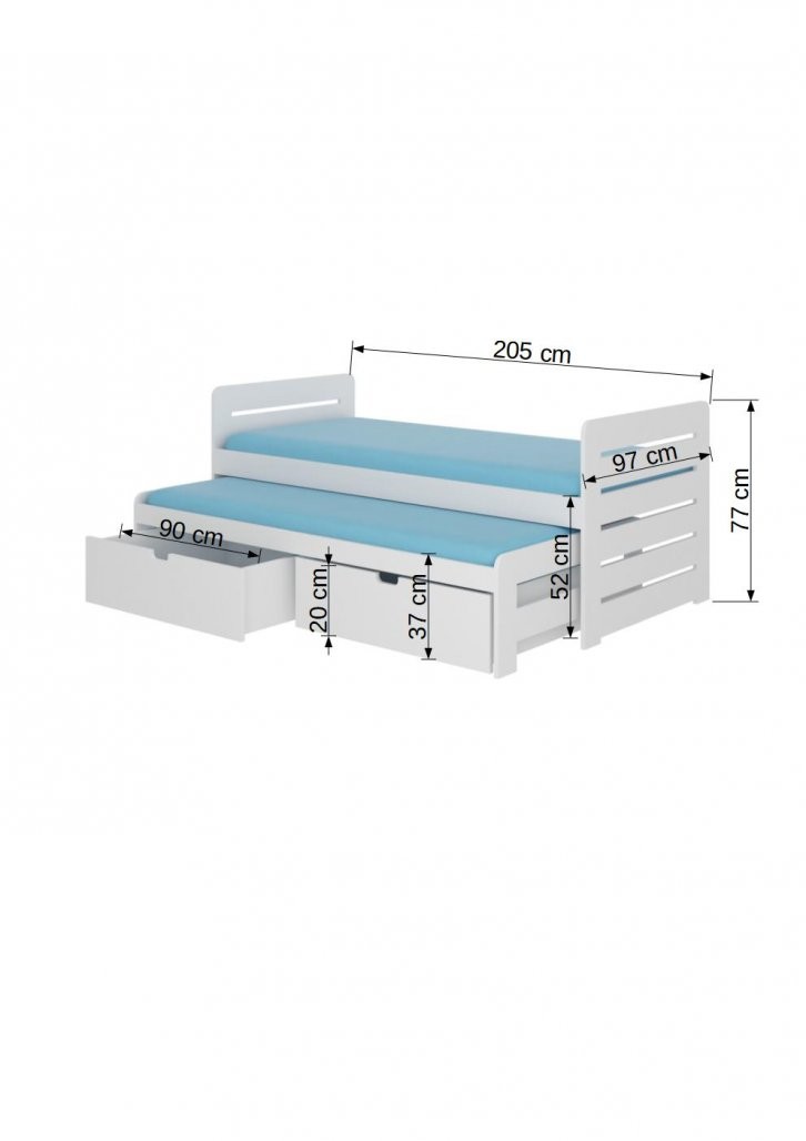 Dvoposteljna otroška postelja TOMI je popolna izbira za sobo dveh otrok ali kot priročna rešitev za goste. Zasnovana je z mislijo na funkcionalnost, udobje in estetski videz, zato se odlično prilega vsakemu notranjemu dizajnu.