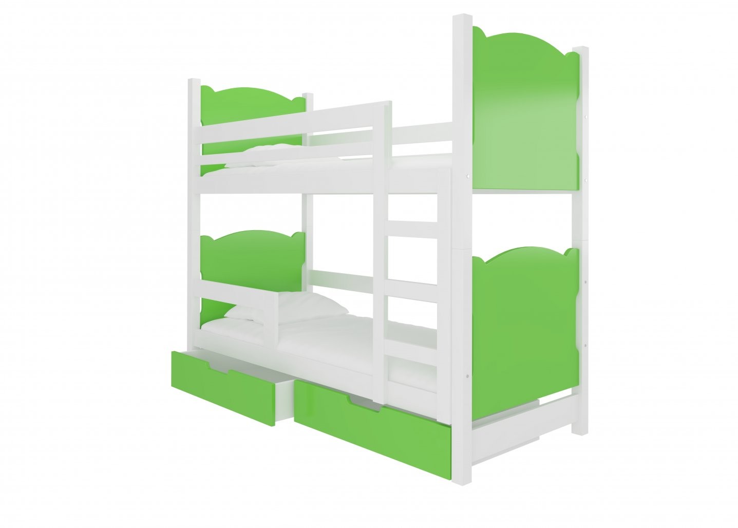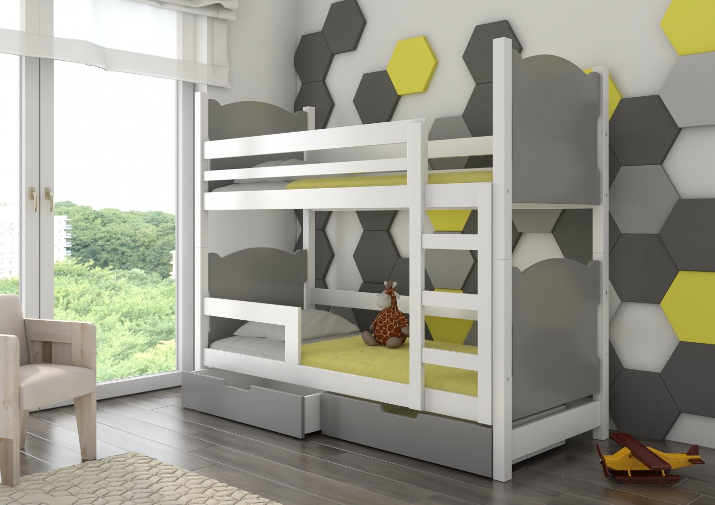 Dvoposteljni pograd MARABA z vzmetnicami je idealna rešitev za optimalen izkoristek prostora v otroški ali mladinski sobi. S svojo funkcionalno zasnovo in varnostnimi elementi ponuja udobno in varno spanje za dve osebi.