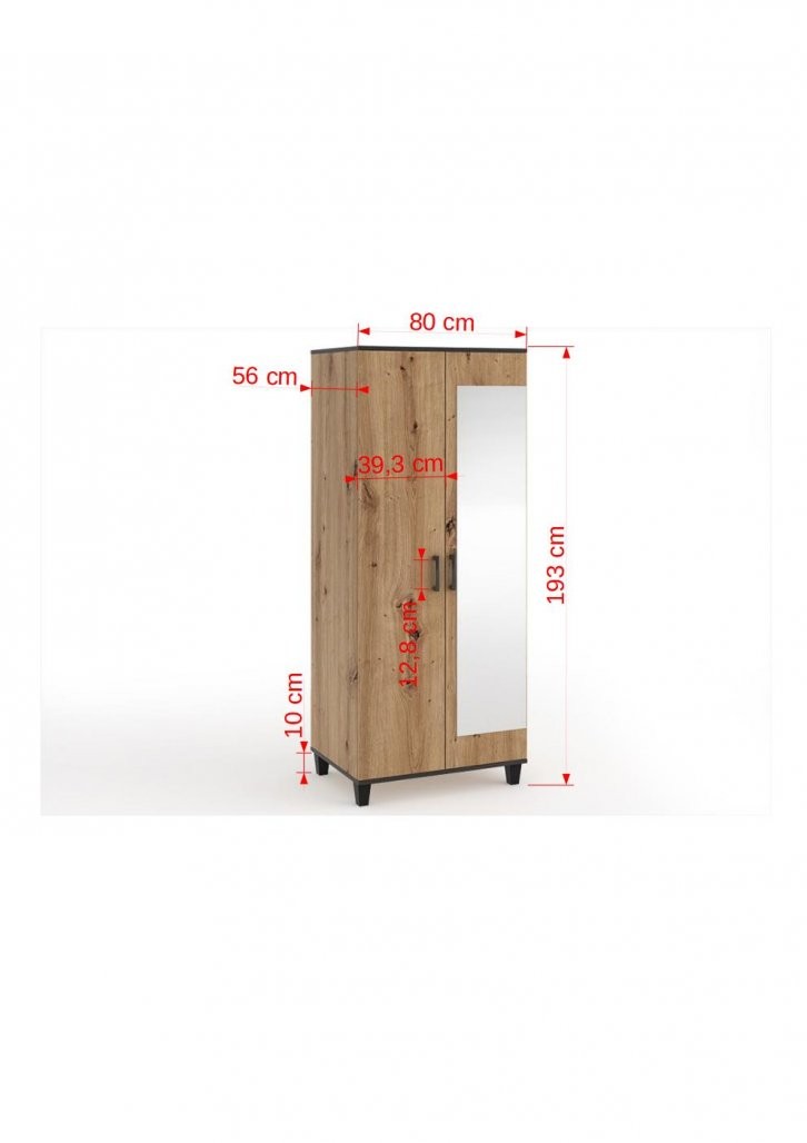Dvovratna garderobna omara z ogledalom POLA 11 je popolna izbira za vse, ki iščejo funkcionalno in estetsko dovršeno rešitev za shranjevanje oblačil. S svojim sodobnim dizajnom in kombinacijo barv hrasta Artisan ter črnih dodatkov bo popestrila vsak prostor – bodisi spalnico, dnevno sobo ali hodnik.
