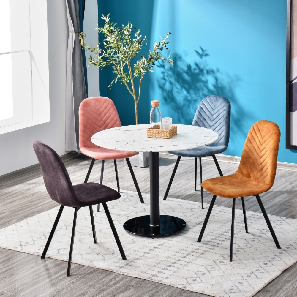 Steklena miza PRADA bo popestila vsak prostor. Čudovit vzorec belega marmorja bo prinesel moderno in elegantno vzdušje v vašo jedilnico, črno kovinsko podnožje pa izenačilo svetel in temen dizaj, ter mizi omogočilo veliko stabilnost. Kot pika na i je okrogli podstavek, ki je narejen iz črnega stekla, tako da združuje najboljše detajle.