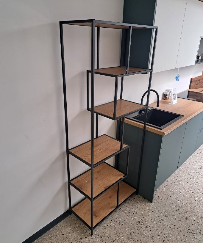 Poličnik Nastel je elegantno oblikovan in vzdržljiv kos pohištva, ki bo hkrati obogatil vaš prostor in poskrbel za večjo urejenost. Asimetrični detajli in atraktivna kombinacija mat črne in divjega hrasta ustvarjajo sodoben videz, ki se lahko prilagodi kateremukoli stilu. Je na zalogi in razstavljen v našem Showroomu v Ljubljani.
