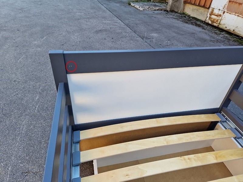 POSTELJA JE NAPRODAJ SESTAVLJENA IN IMA MANJŠO POŠKODBO NA VZGLAVJU. FOTOGRAFIJE V GALERIJI.