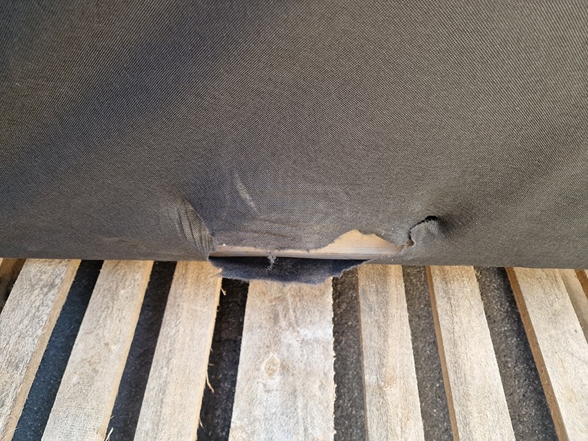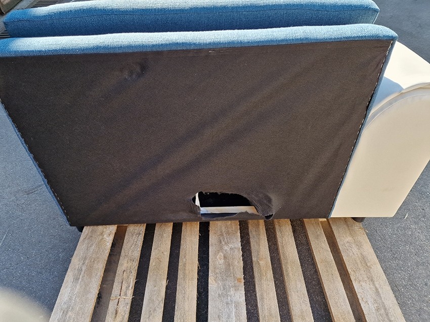 SEDEŽNA GARNITURA JE NERABLJENA IN JE EKSPONAT. IMA POŠKODBO/RAZTRGANINO TKANINE NA ZADNJEM DELU IN MANJŠE NEPRAVILNOSTI V IZDELAVI. FOTOGRAFIJE V GALERIJI.