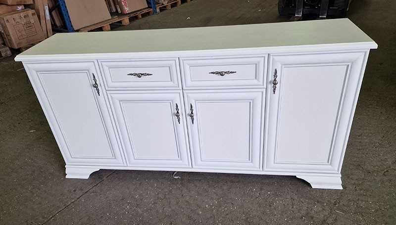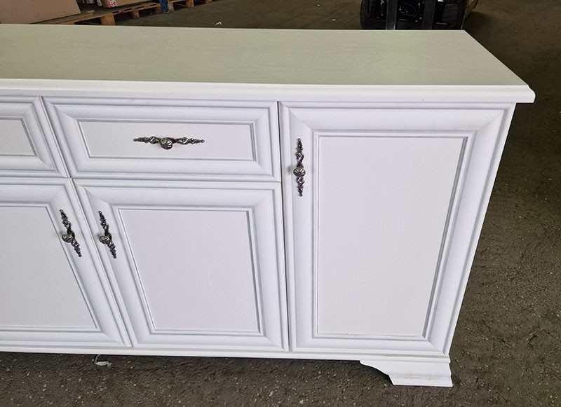 Široka komoda KENTAKI nudi veliko shranjevalnega prostora in tako bodo vaše sanje o urejenem prostoru zaživele. Zaradi komode bo vaš prostor vedno urejen in stvari na svojem mestu. Na voljo je v beli barvi in je rustikalnega izgleda.
