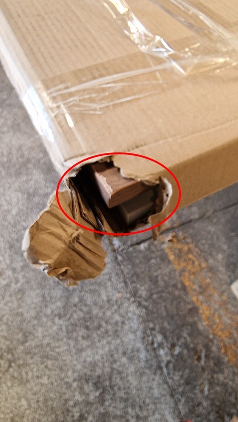 IZDELEK JE EKSPONAT IN IMA MANJŠO POŠKODBO ELEMENTA V HRASTOVI BARVI. FOTOGRAFIJA V GALERIJI.