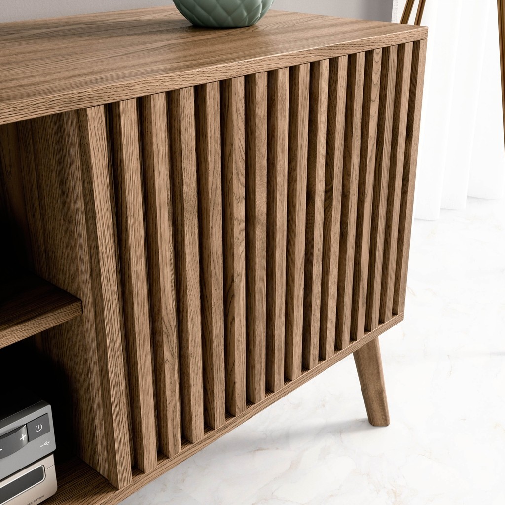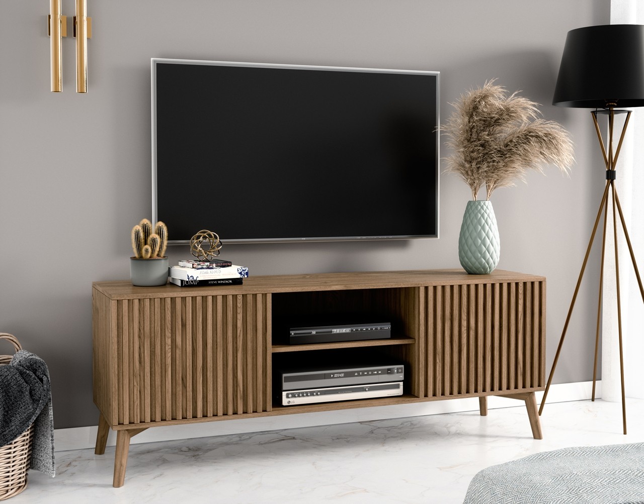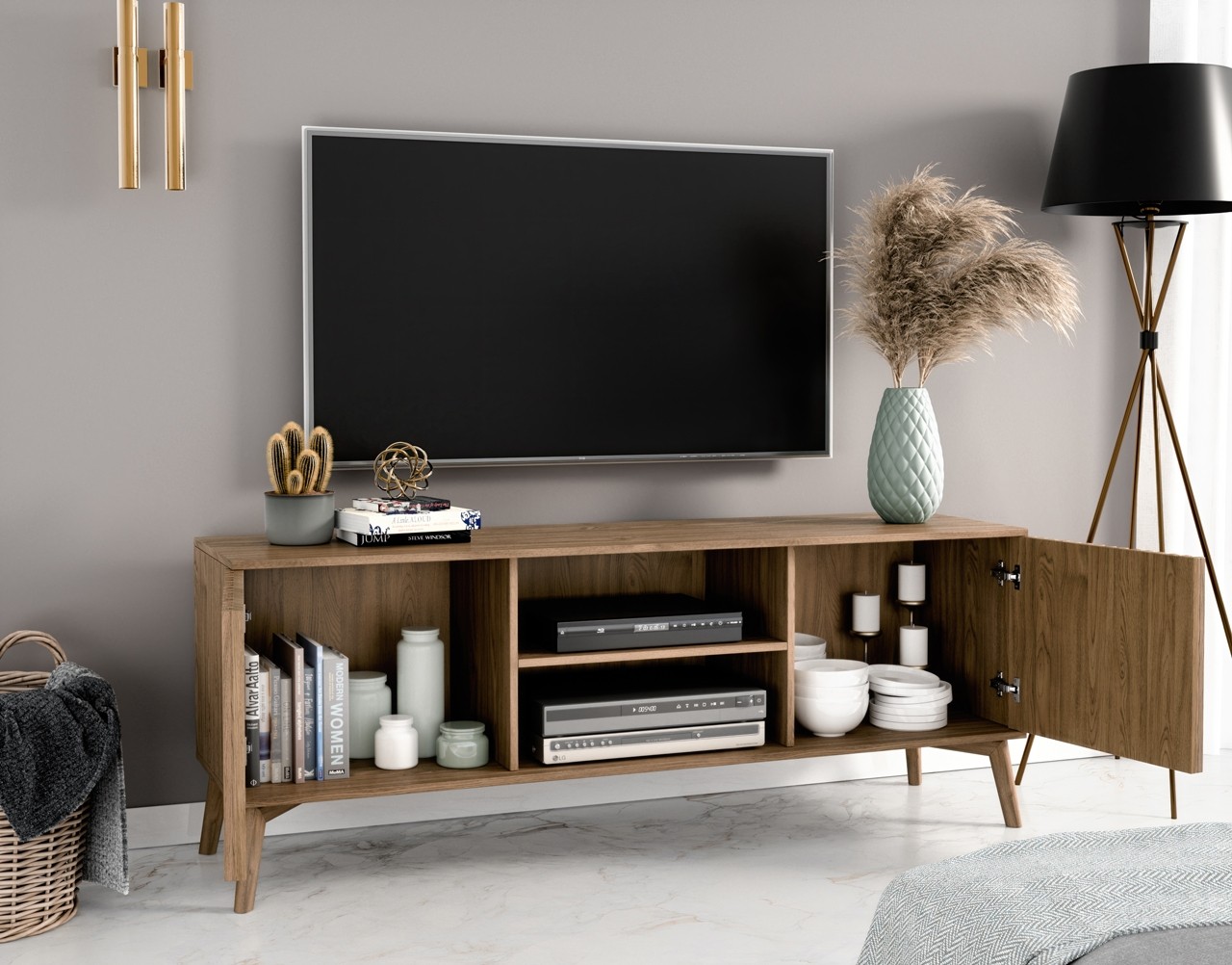 Privoščite si sodobno tv omarico, ki bo postala osrednji del dnevne sobe. S skrbno pozornostjo do detajlov je ta TV omarica ENTSIAN idealna rešitev za tiste, ki iščejo praktičen in eleganten kos pohištva za shranjevanje multimedijskih naprav. Omarica vsebuje dvoja vratca v katera lahko shranite knjige, družabne igre in ostale vam ljube predmete. TV omarica ima plastične nogice.