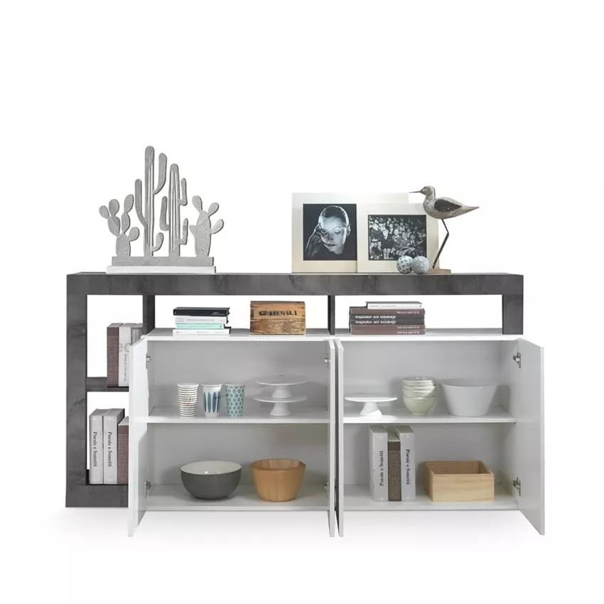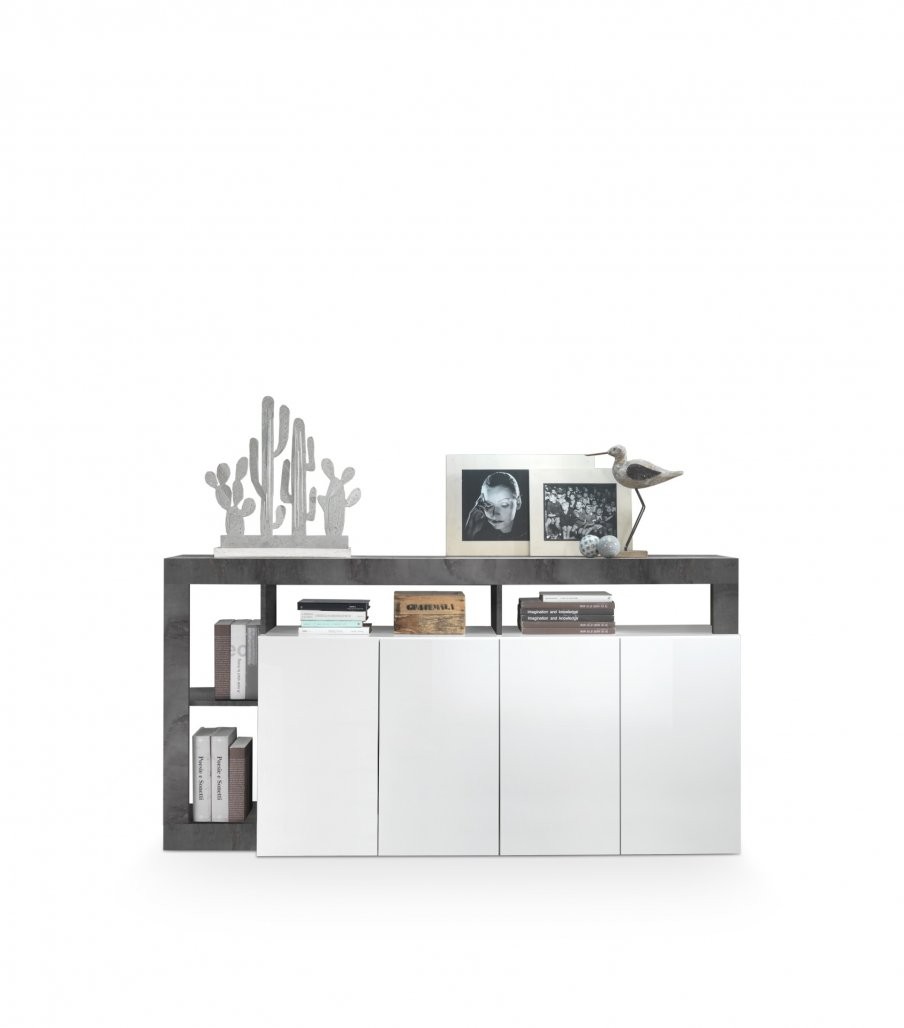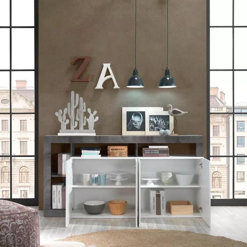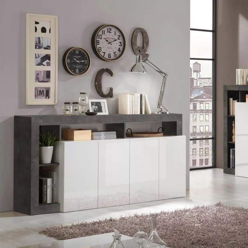 Elegantna bela komoda s 4 vrati HAMBURG 209030-08OX je popolna izbira za sodoben dnevni prostor. S svojo kombinacijo visokega sijaja in industrijskega videza prinaša eleganco in funkcionalnost v vsak dom. Komoda ponuja veliko prostora za shranjevanje in je idealna za organizacijo vaših dnevnih potrebščin.