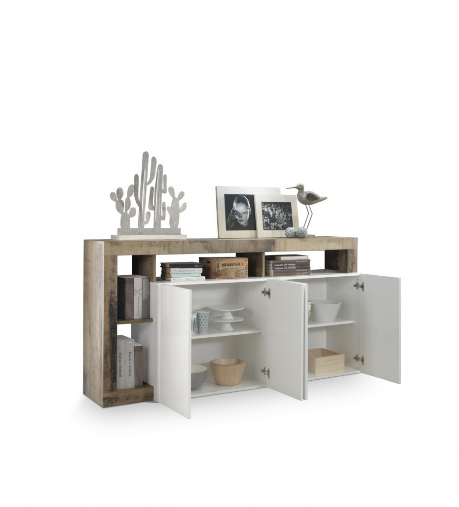 Elegantna bela komoda s 4 vrati HAMBURG 209030-08P je popolna izbira za vsak sodoben dnevni prostor. S svojo kombinacijo belega visokega sijaja in detajlov v barvi hrasta PERO ustvarja občutek prostornosti in topline. Komoda ponuja veliko prostora za shranjevanje, hkrati pa s svojo moderno obliko dopolnjuje vsak interier.