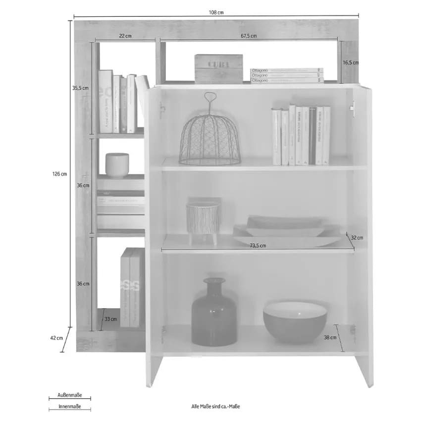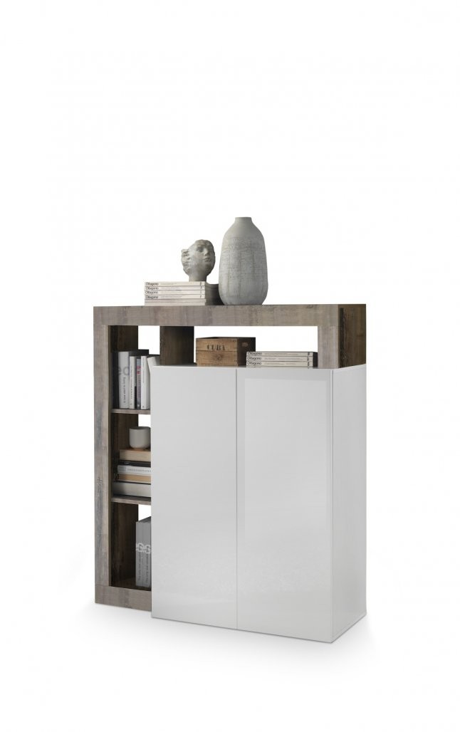 HAMBURG predstavlja popolno ravnovesje med sodobnostjo in toplino. S svojim elegantnim sijajnim belim zaključkom odseva svetlobo in vsakemu prostoru daje občutek prostornosti. Z dvema med seboj prepletenima enotama deluje kot voluminozen in privlačen kos pohištva, primeren za vsak ambient.