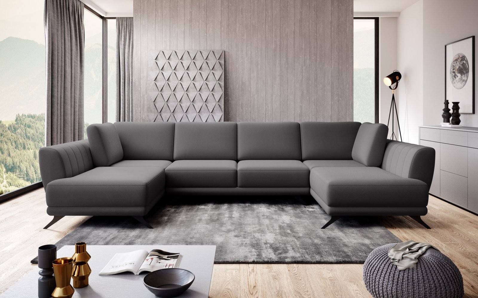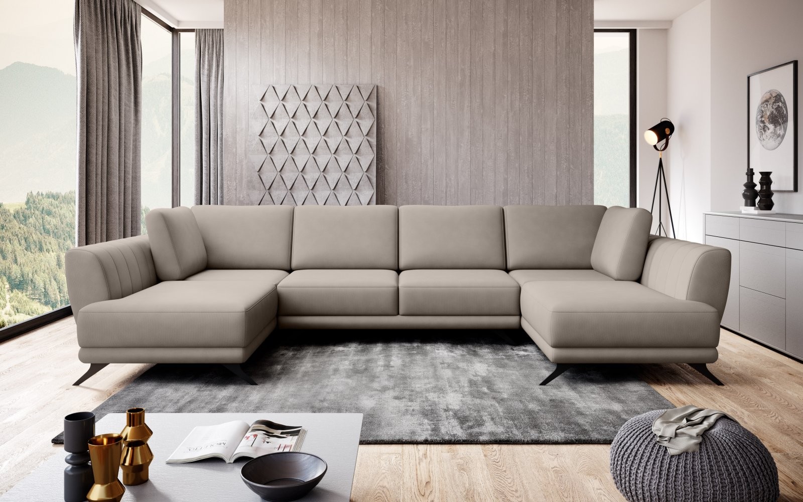 Sedežna garnitura Larco je popolna izbira za vse, ki iščejo udobje, funkcionalnost in estetsko dovršenost v enem kosu pohištva. Ta moderna sedežna garnitura v obliki črke U ponuja prostorno sedenje čez dan ter udobno ležišče ponoči.