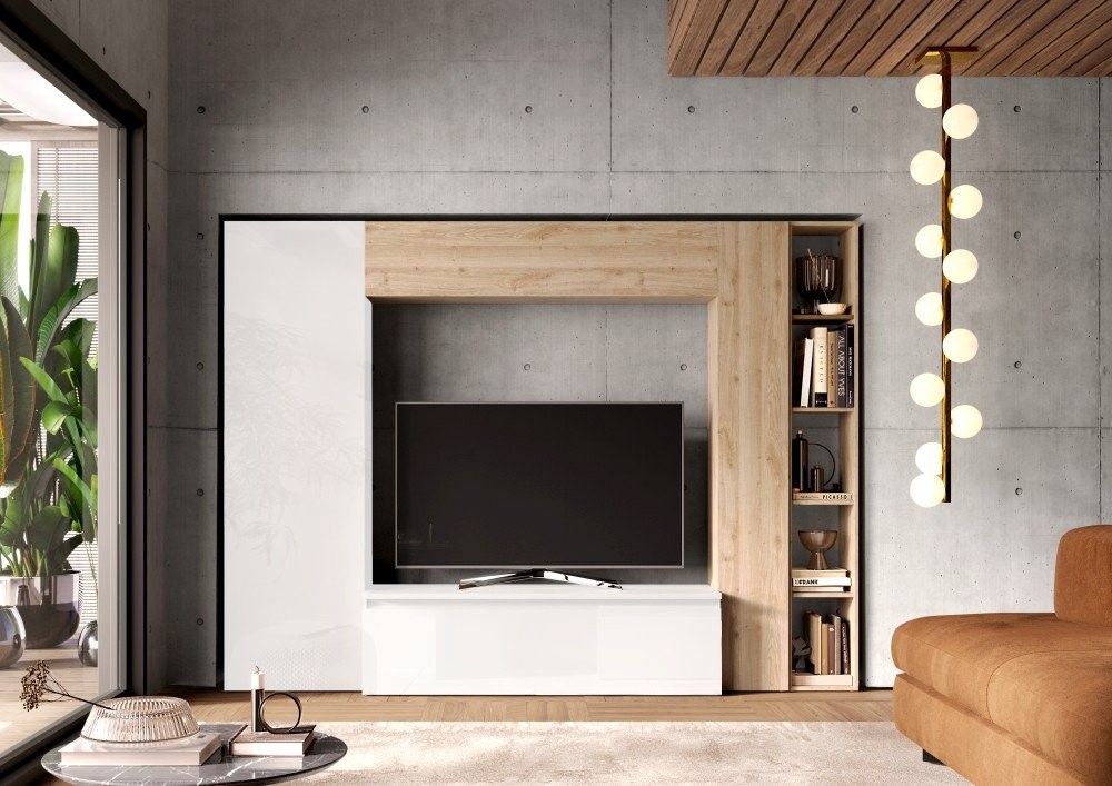 Elegantna TV omarica bela/hrast INFINITY 2.0 900009-BIK je popolna izbira za sodoben dnevni prostor. S svojim prefinjenim videzom in funkcionalno zasnovo ponuja praktičnost ter estetsko dovršenost. Kombinacija bele barve in hrastovega dekorja ustvarja topel in sodoben ambient, ki se zlahka zlije z različnimi slogi opreme.
