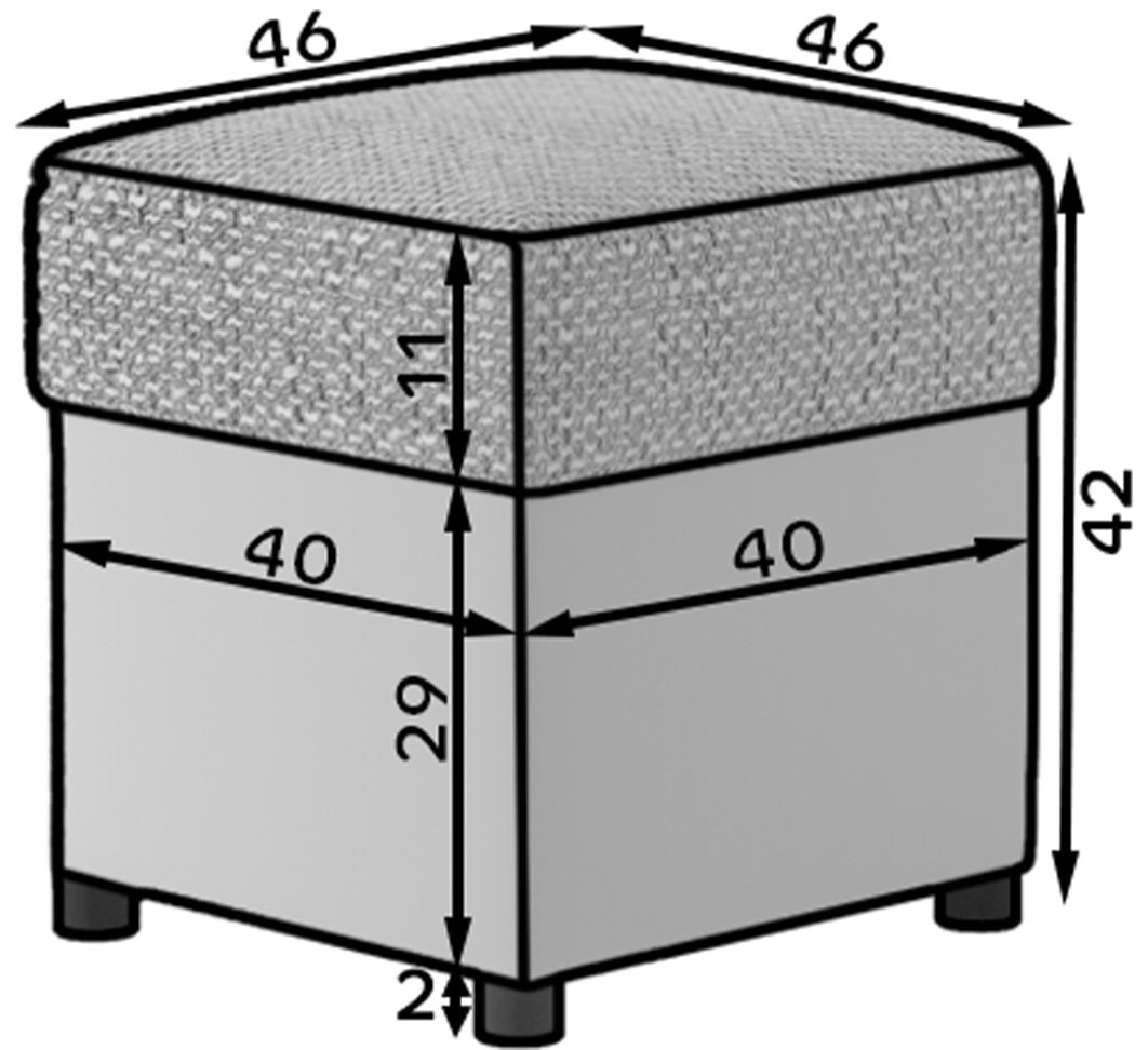 Elegantni Tabure Pouf R3 je popolna izbira za vse, ki iščejo udobje, funkcionalnost in eleganten dizajn v enem kosu pohištva. S svojo kvadratno obliko dimenzij 45 x 45 cm in stabilno konstrukcijo se odlično prilega različnim notranjim slogom.