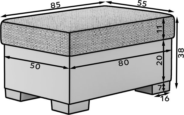 Tabure ni le vizualno privlačen, temveč tudi izjemno udoben zahvaljujoč polnilu iz pene T25, ki zagotavlja mehkobo in prožnost. S svojo velikostjo 85x55 cm je primeren za manjše in večje prostore, hkrati pa ponuja tudi praktičen shranjevalni prostor.