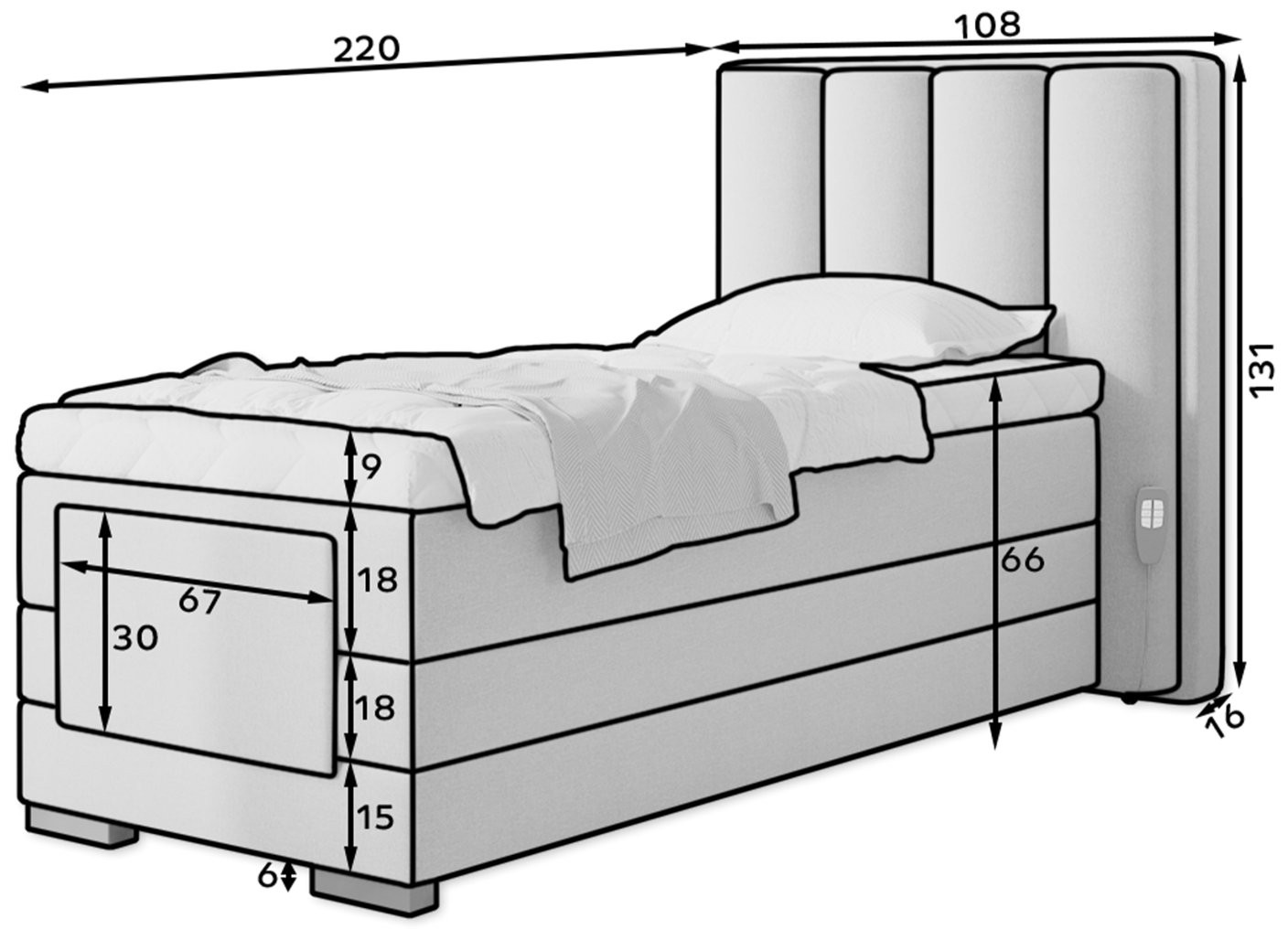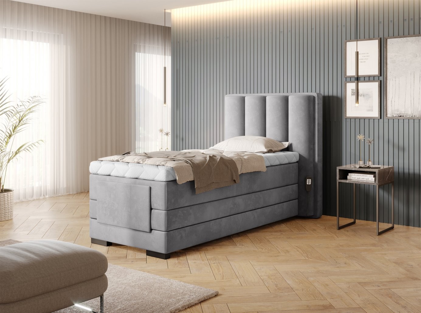 Električna boxspring postelja Veros 90x200 je popolna izbira za vse, ki si želijo vrhunsko udobje in prilagodljivost med spanjem. S sodobnim dizajnom in številnimi funkcionalnostmi bo postelja postala osrednji kos vaše spalnice.