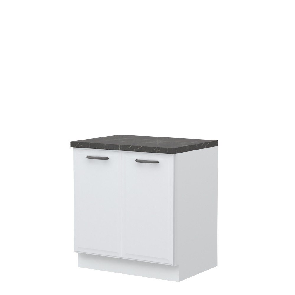 Spodnji element za kuhinjo EVIA ima dvoja vratca s funkcijo tihega zapiranja, ki preprečuje nastanek prask in poškodb in omogoča lažjo vsakodnevno uporabo. Na voljo je v svetli barvi, ki se lepo poda v vsak dom in se enostavno kombinira z drugimi barvami. V notranjosti je vključena ena polica.