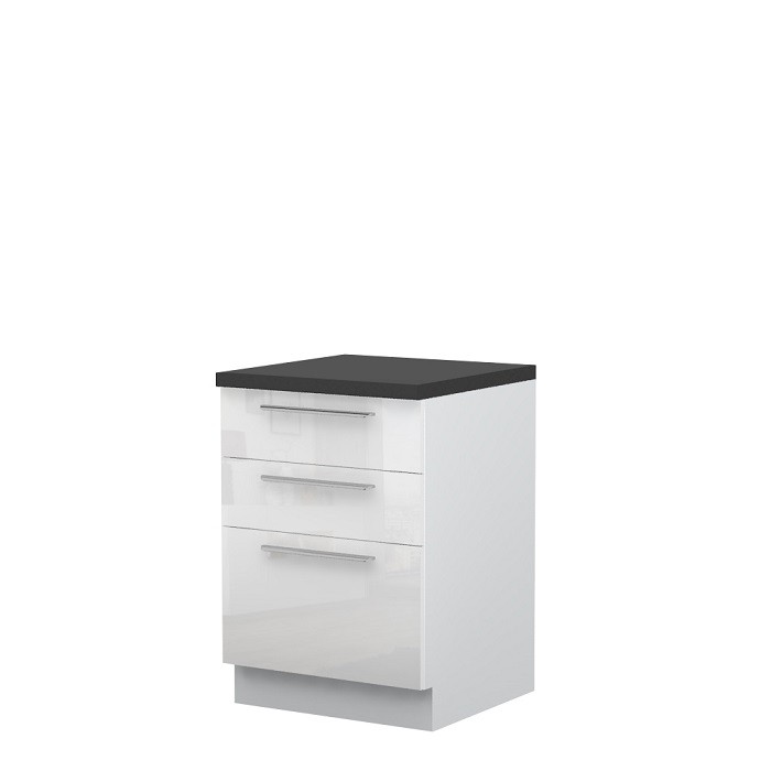 Element za kuhinjo RIVA je dobavljiv v beli barvi visokega sijaja. Element vključuje pult. Ročke je potrebno dodatno naročiti.