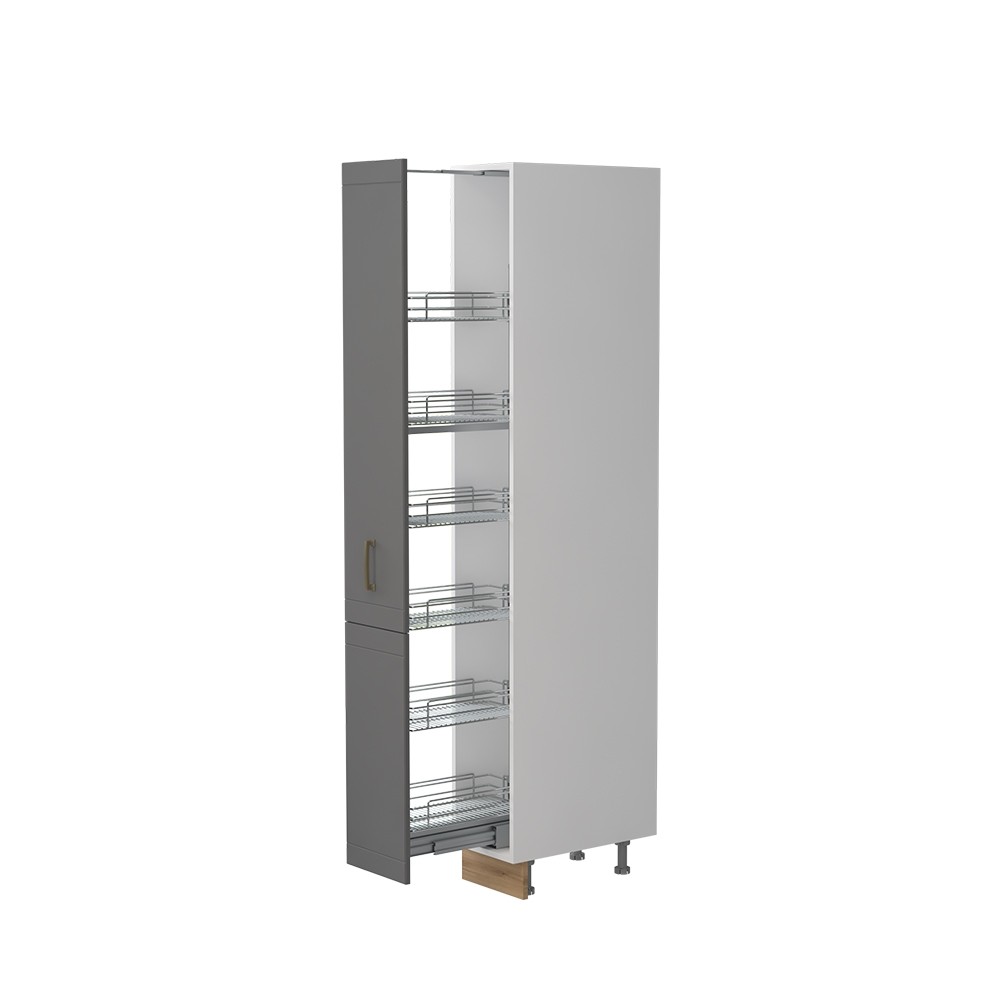 Visoki element z izvlečnimi vratci za kuhinjo TARA ima 6 kovinskih poličk, na katere lahko postavite hrano in razne kuhinjske pripomočke. Ima funkcijo tihega zapiranja in je na voljo v dveh modernih barvah.