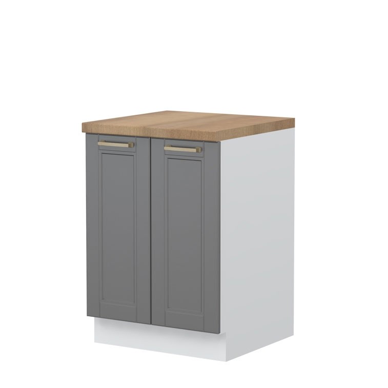 Element za kuhinjo TARA se ponaša s klasičnim videzom in kvaliteto. Ima dvoja lesena vratca s funkcijo tihega zapiranja, ki pripomore k lažji vsakodnevni uporabi. Na voljo je v elegantni beli in grafit barvi, ki izgledata odlično v vsakem domu. Element ima v notranjosti eno polico.
